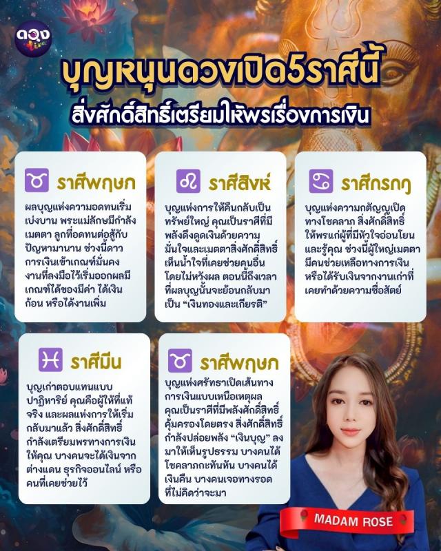 บุญหนุน ดวงเปิด 5 ราศีนี้สิ่งศักดิ์สิทธิ์เตรียมให้พรเรื่องการเงิน  by  MADAM ROSE