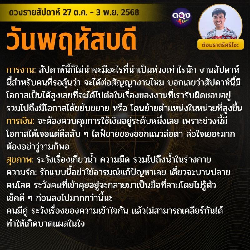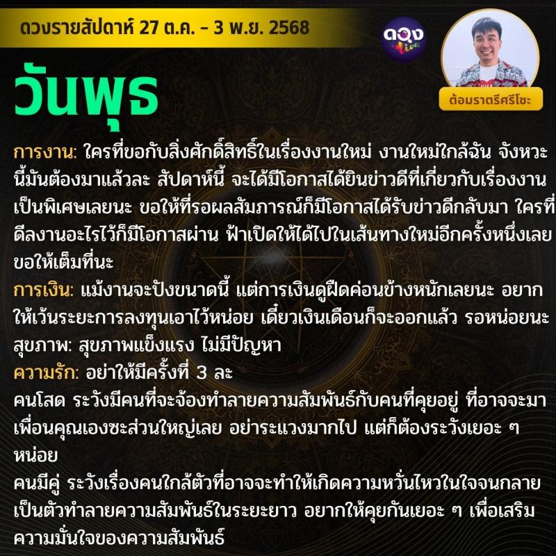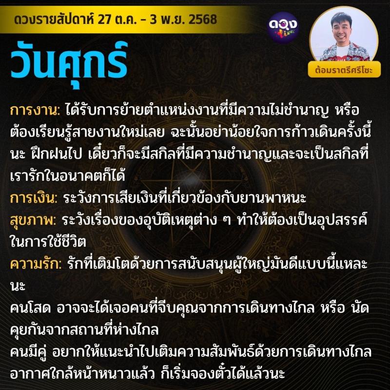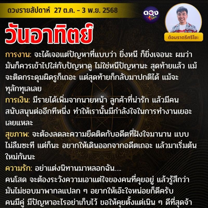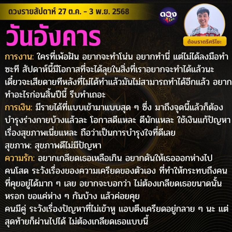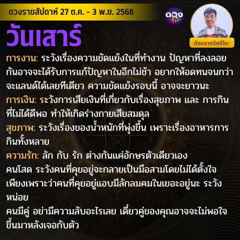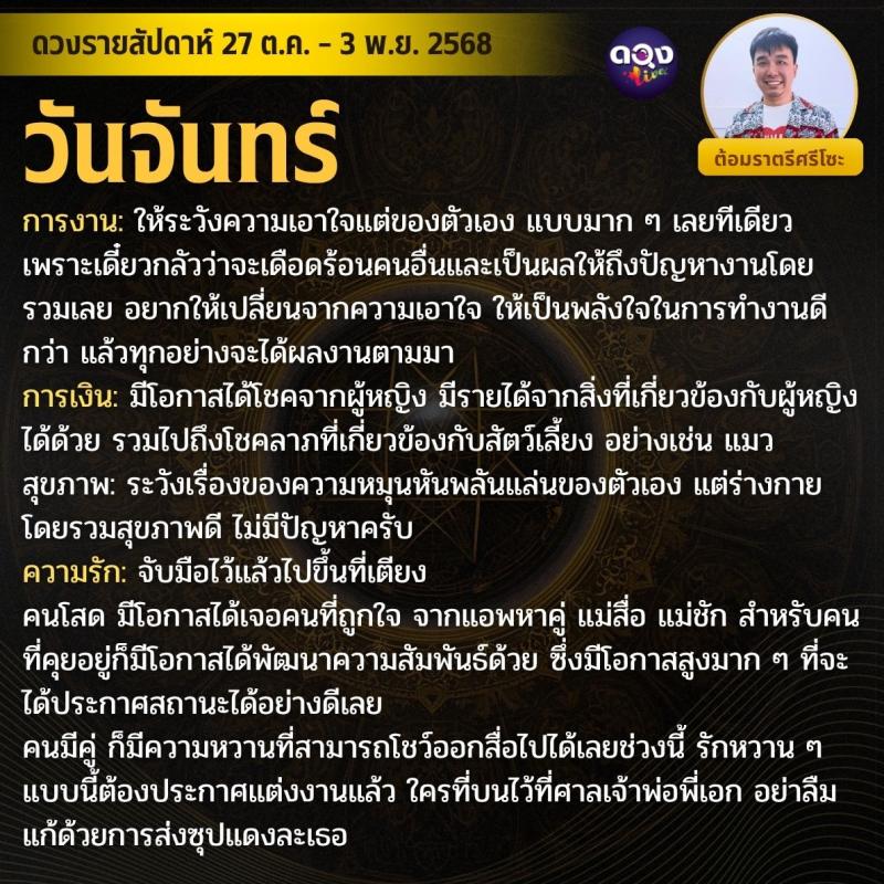 ดวงรายสัปดาห์ 27 ต.ค. – 3 พ.ย. 2568 by ต้อมราตรีศรีโซะ