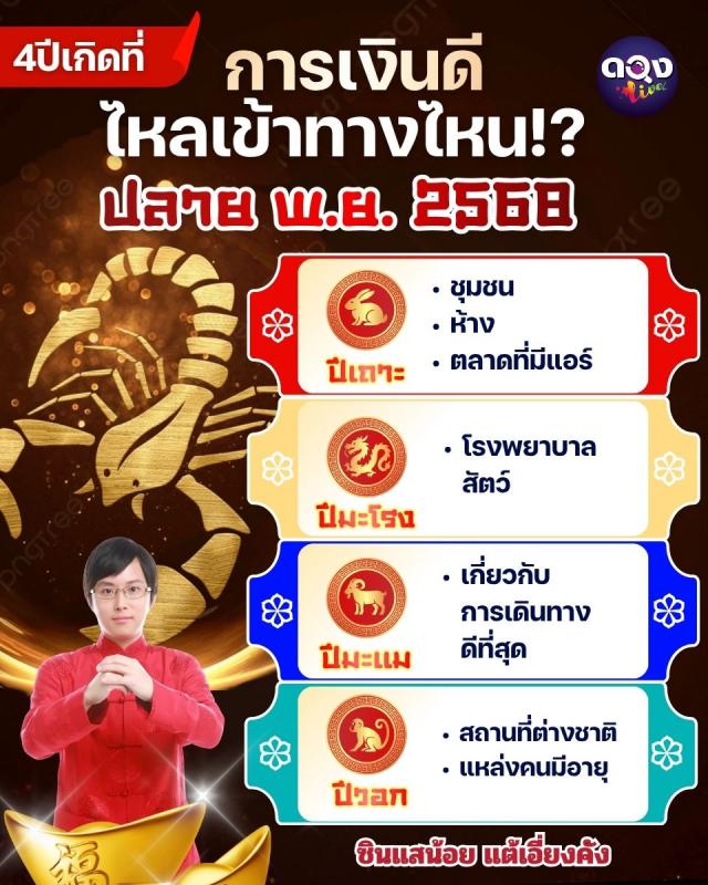 4 ปีเกิด การเงินดี ไหลเข้าทางไหน ปลายพฤศจิกายน 2568 ทำนายโดย ซินแสน้อยแต้เอี่ยงคัง
