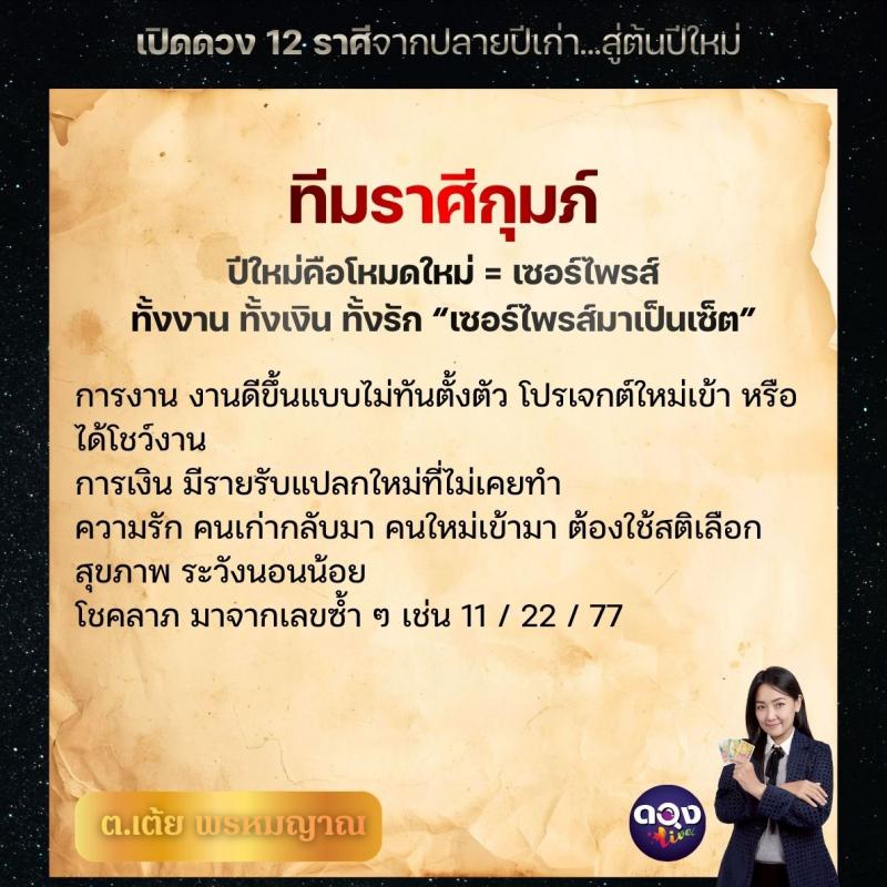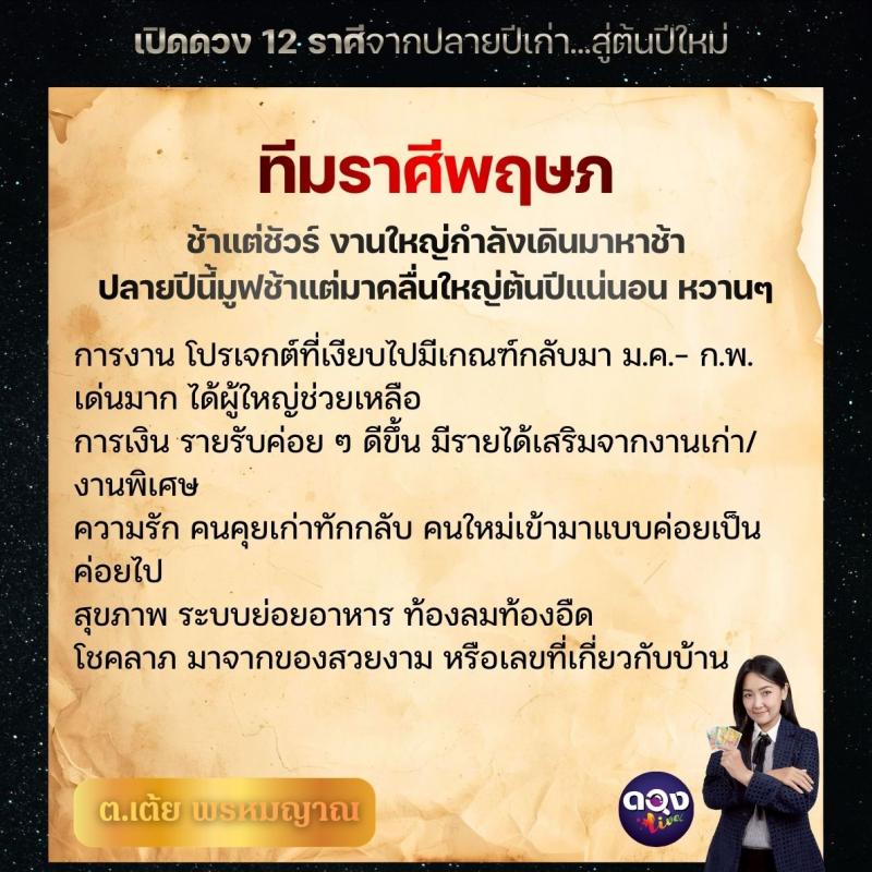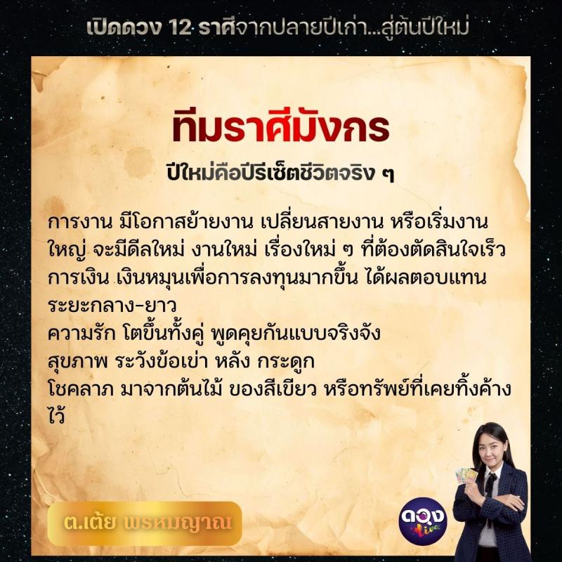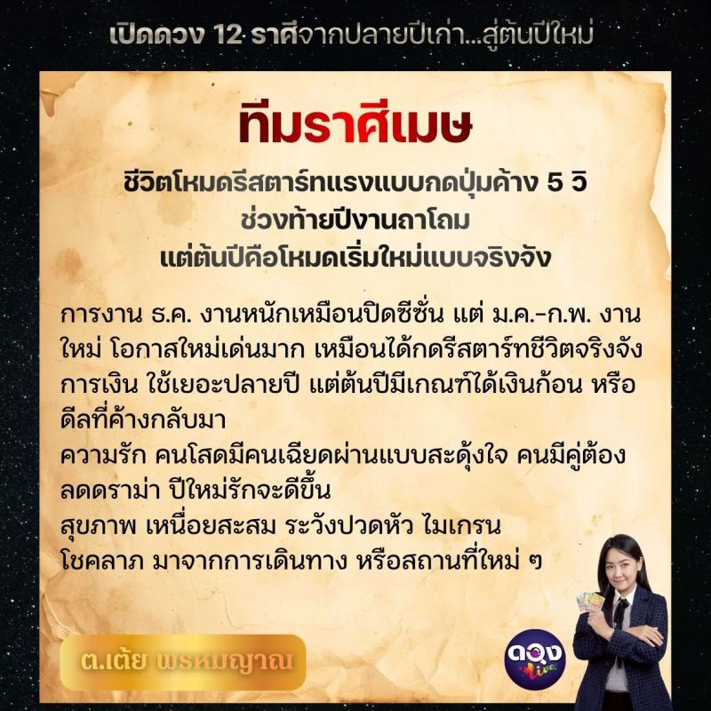 เปิดดวง 12 ราศี จากปลายปีเก่า…สู่ต้นปีใหม่ (งาน เงิน รัก สุขภาพ โชคลาภ) โดย ต.เต้ย พรหมญาณ