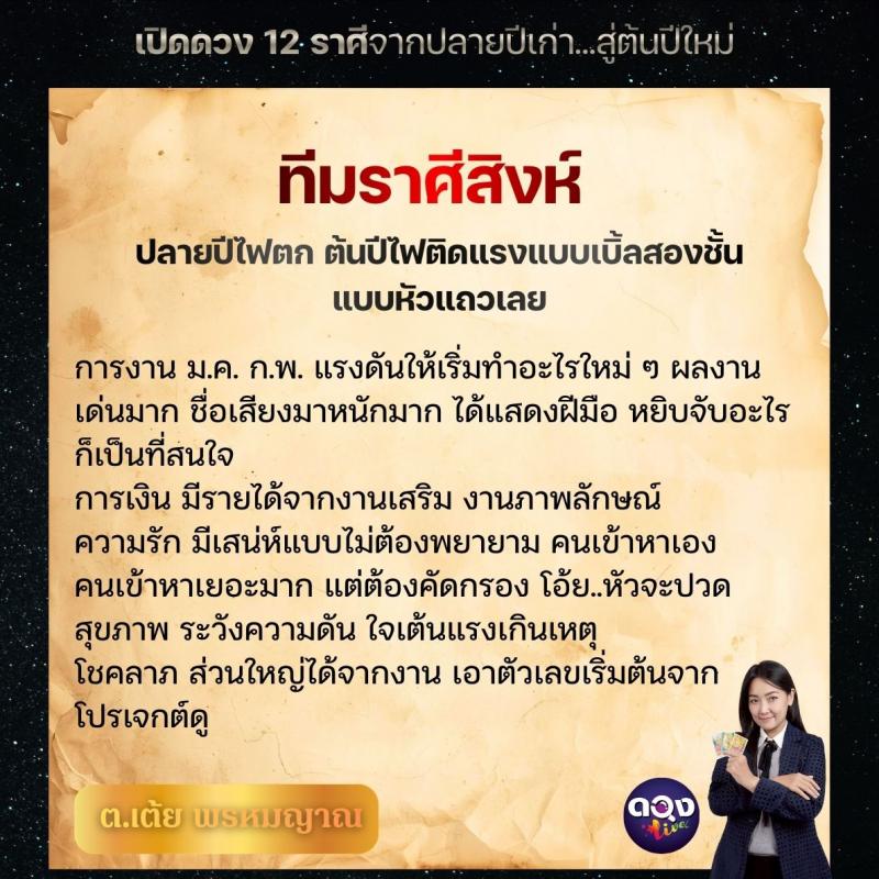 ทีมราศีสิงห์ ปลายปีไฟตก ต้นปีไฟติดแรงแบบเบิ้ลสองชั้น แบบหัวแถวเลย