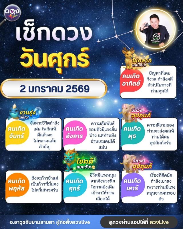 ดวงรายวันประจำวันศุกร์ที่ 2 มกราคม 2569 โดย อ.อาวุธจับยามสามตา – ผู้ก่อตั้งดวง Live