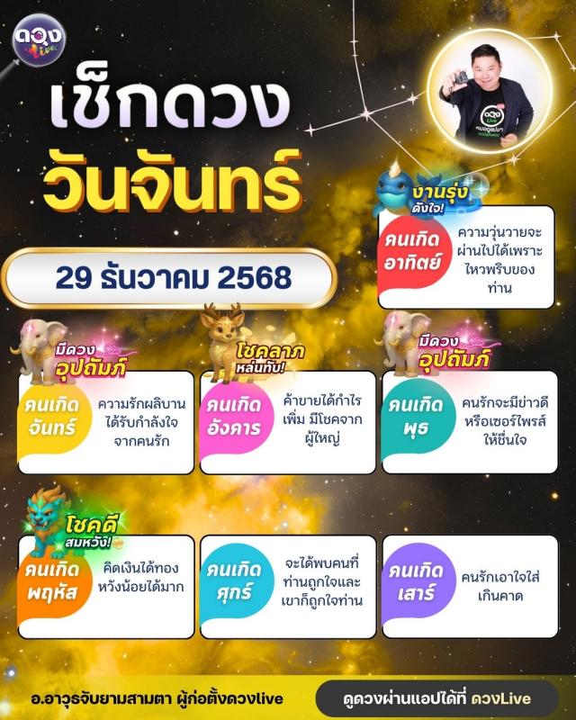 ดวงรายวันประจำวันจันทร์ที่ 5 มกราคม 2569 โดย อ.อาวุธจับยามสามตา – ผู้ก่อตั้งดวง Live