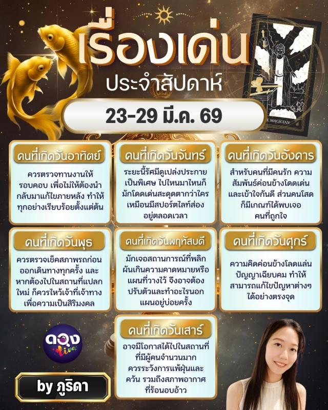เรื่องเด่นประเด็นเด็ดประจำสัปดาห์ 23-29 มี.ค. 69 ทำนายโดย ภูริดา