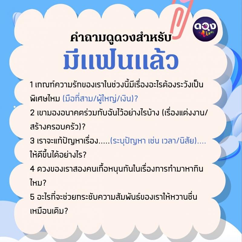 3.คำถามดูดวงสำหรับมีแฟนแล้ว