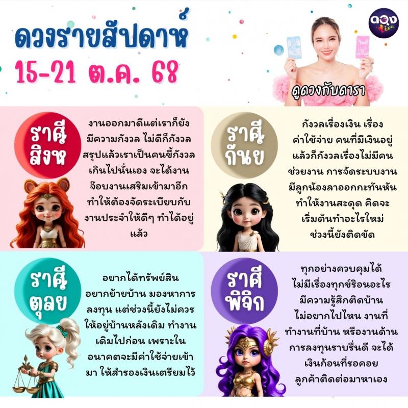 ดวงรายสัปดาห์ 15–21 ตุลาคม 2568 ดูดวงกับดารา