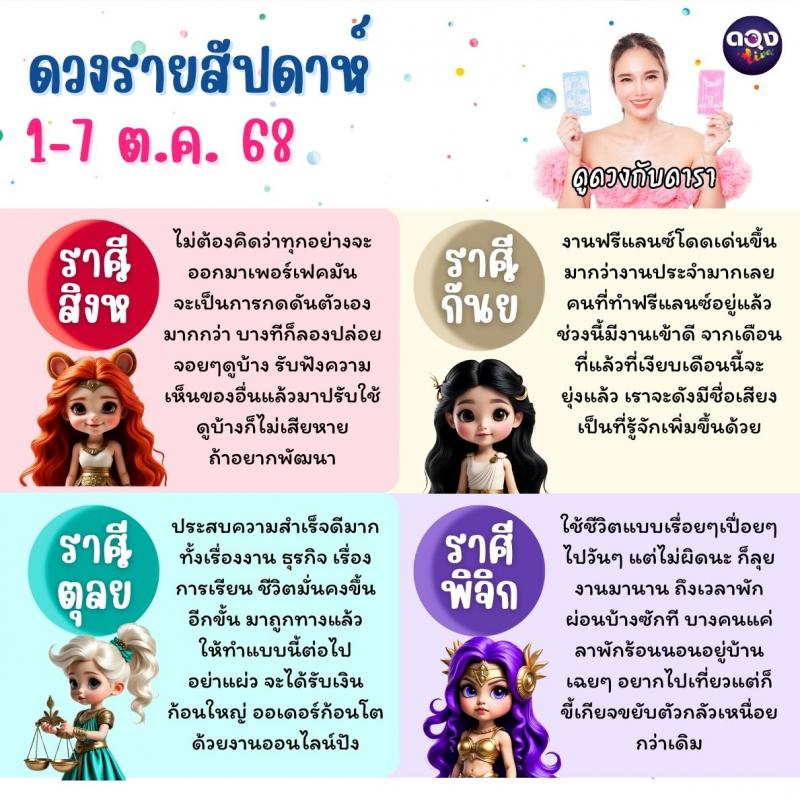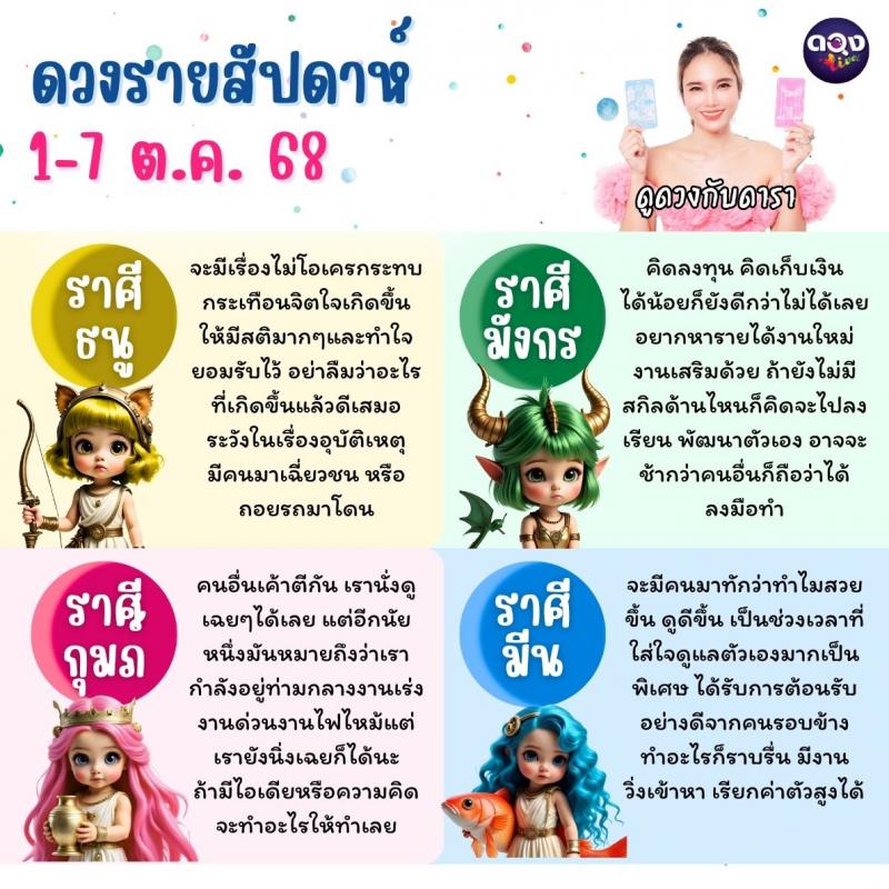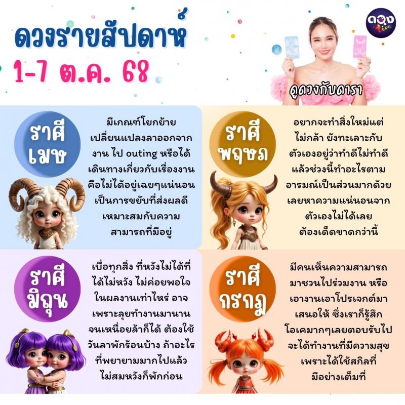 ดวงรายสัปดาห์ 1 – 7 ตุลาคม 2568 ดูดวงกับดารา