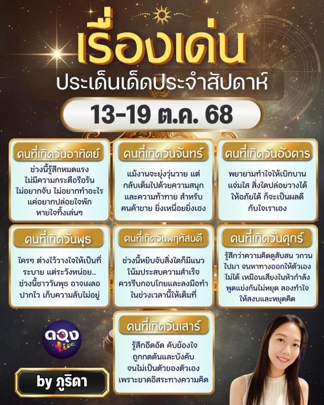 เรื่องเด่นประเด็นเด็ดประจำสัปดาห์ ระหว่างวันที่ 13 – 19 ตุลาคม 2568 โดย ภูริดา