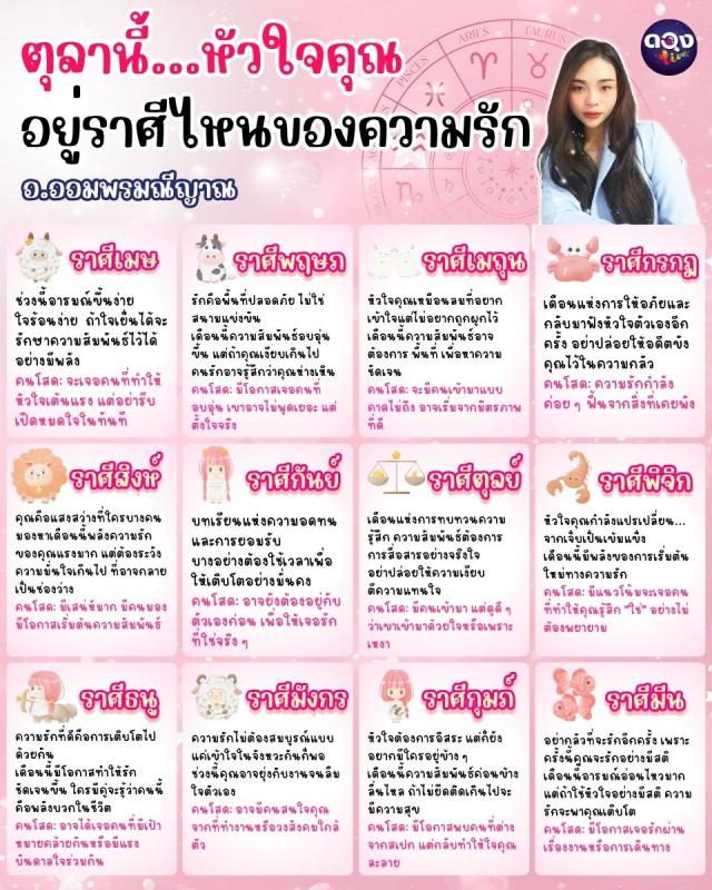 ตุลานี้...หัวใจคุณอยู่ราศีไหนของความรัก โดย อ.ออม พรมณีญาณ