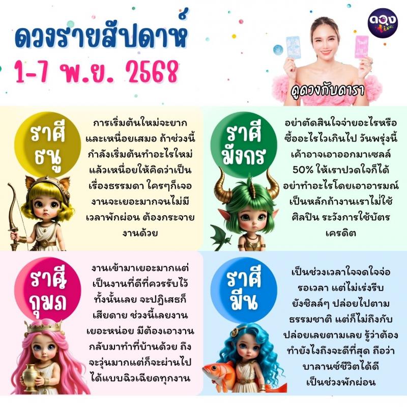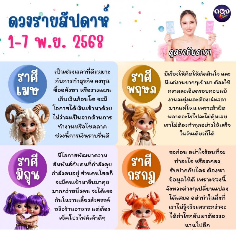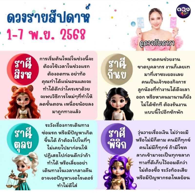 ดวงรายสัปดาห์ 1–7 พฤศจิกายน 2568 ดูดวงกับดารา