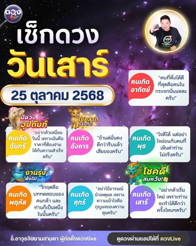 ดวงรายวันเสาร์ที่ 25 ตุลาคม 2568 โดย อ.อาวุธจับยามสามตา – ผู้ก่อตั้งดวง Live