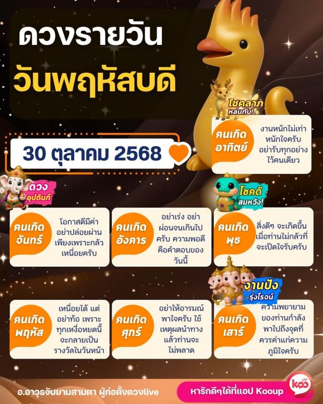 ดวงรายวันพฤหัสบดีที่ 30 ตุลาคม 2568 โดย อ.อาวุธจับยามสามตา – ผู้ก่อตั้งดวง Live