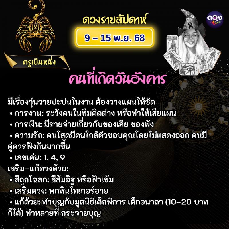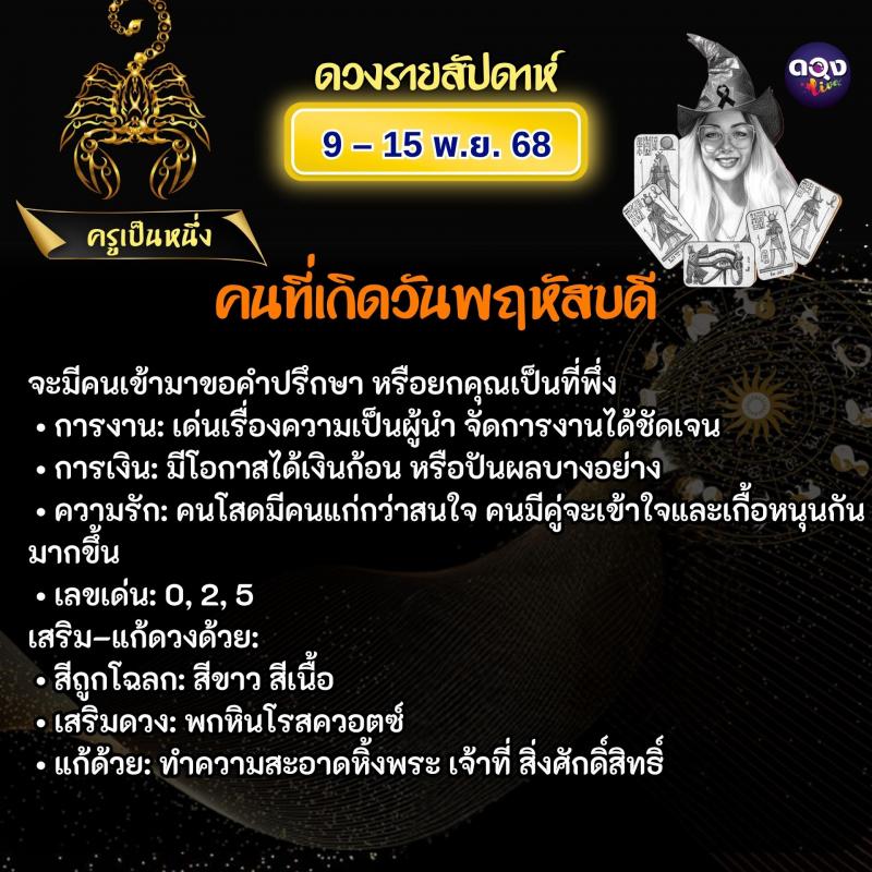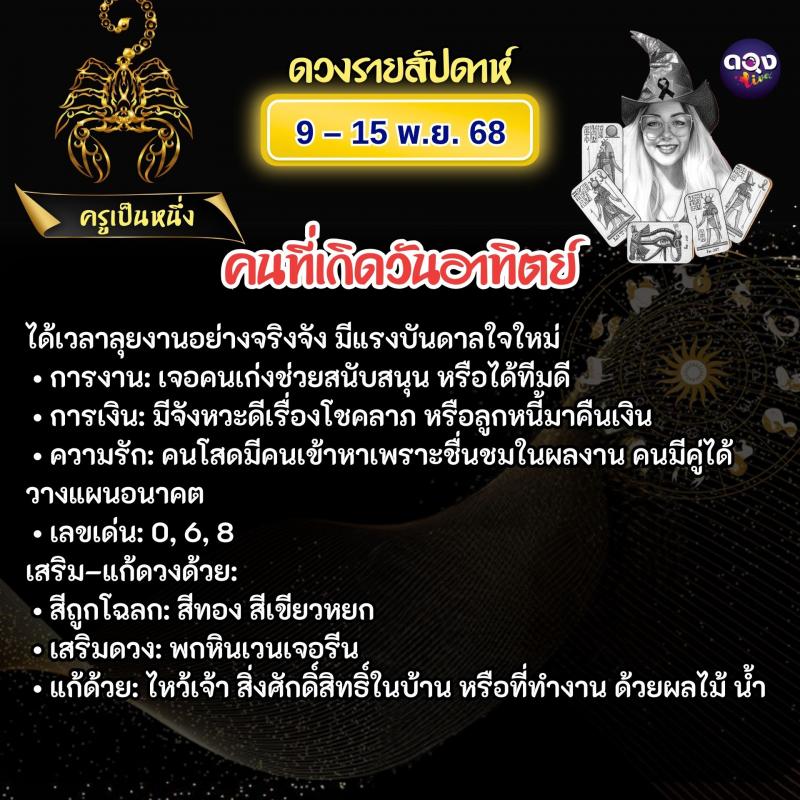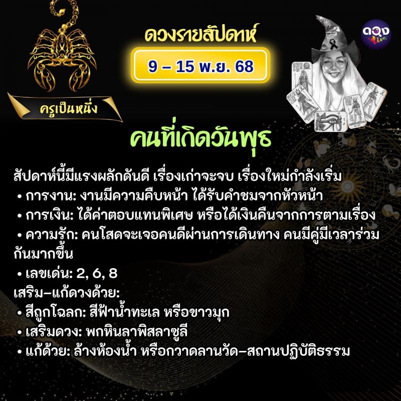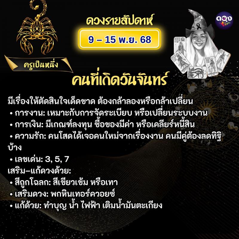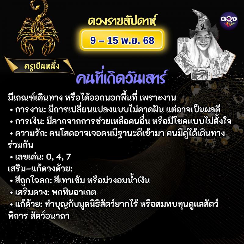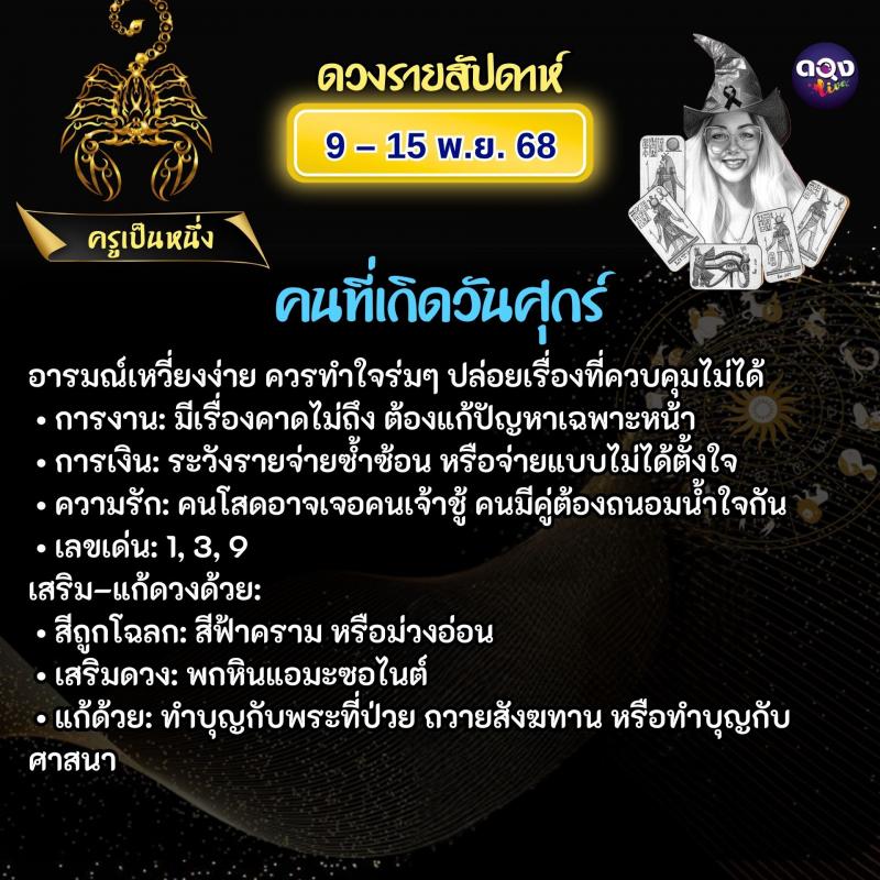 ดวงรายสัปดาห์ 9 – 15 พฤศจิกายน 2568 ทำนายโดย ครูเป็นหนึ่ง