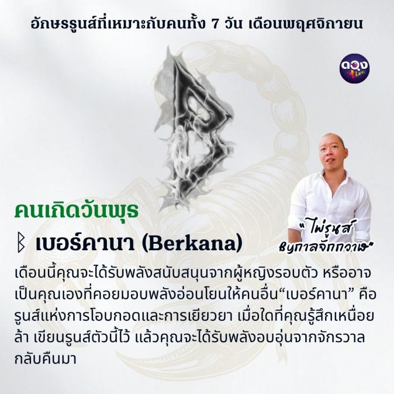 เดือนนี้คุณจะได้รับพลังสนับสนุนจากผู้หญิงรอบตัว หรืออาจเป็นคุณเองที่มอบพลังอ่อนโยนให้ผู้อื่น “เบอร์คานา” คือรูนส์แห่งการโอบกอดและการเยียวยา เมื่อรู้สึกเหนื่อยล้า เขียนรูนส์ตัวนี้ไว้ แล้วคุณจะได้รับพลังอบอุ่นจากจักรวาลกลับคืนมา