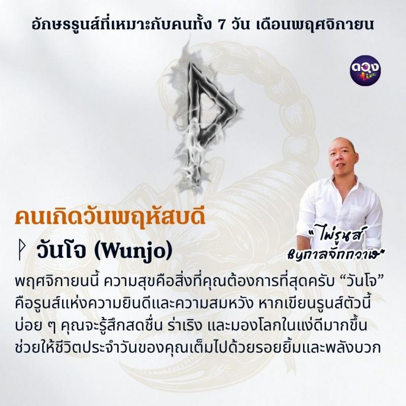 พฤศจิกายนนี้ ความสุขคือสิ่งที่คุณต้องการที่สุด “วันโจ” คือรูนส์แห่งความยินดีและความสมหวัง หากเขียนรูนส์ตัวนี้บ่อยๆคุณจะรู้สึกสดชื่น ร่าเริง และมองโลกในแง่ดีมากขึ้น ช่วยให้ชีวิตเต็มไปด้วยรอยยิ้มและพลังบวก