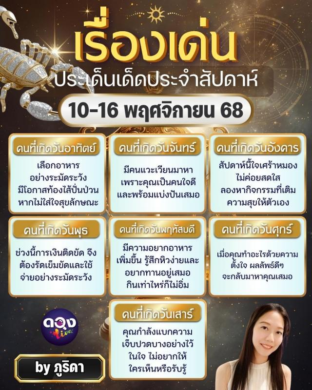 เรื่องเด่นประเด็นเด็ดประจำสัปดาห์ 10-16 พ.ย. 68 by ภูริดา