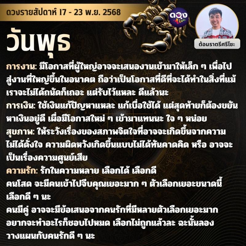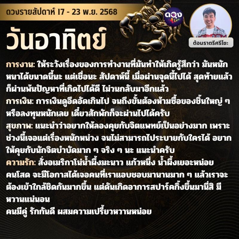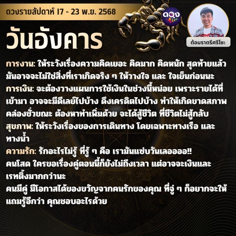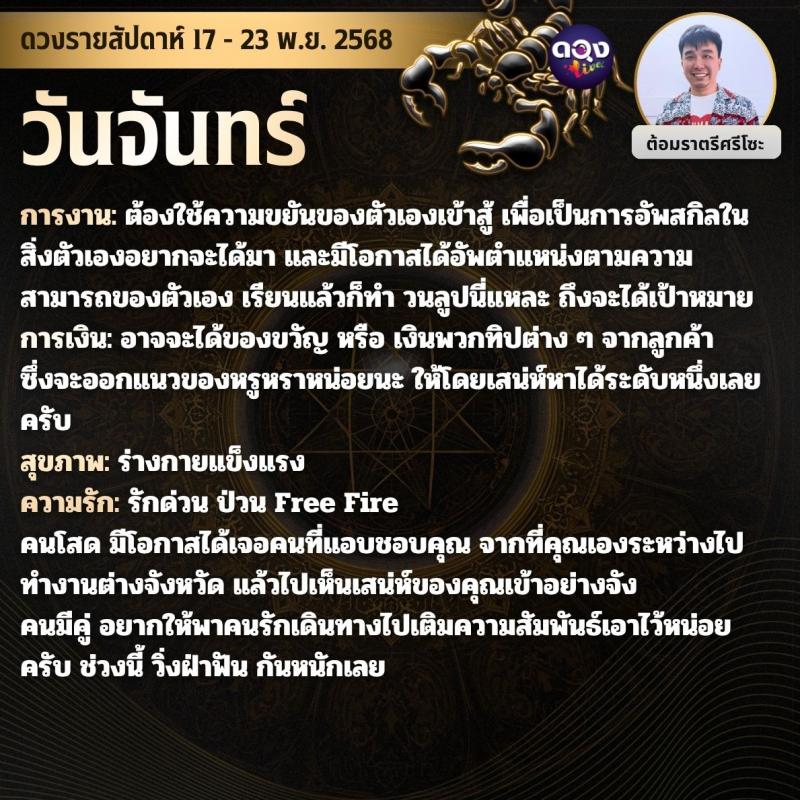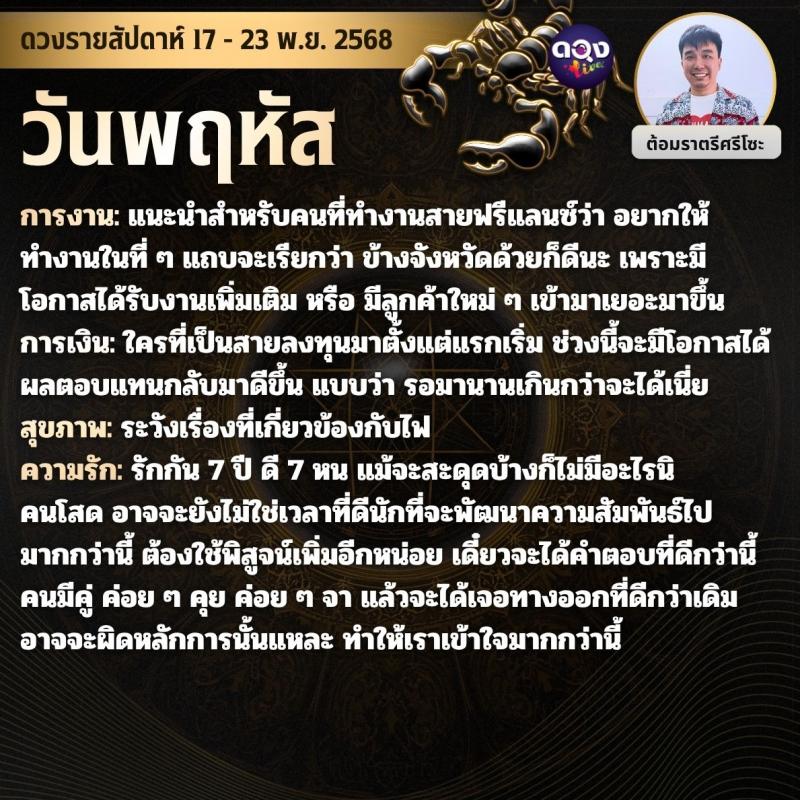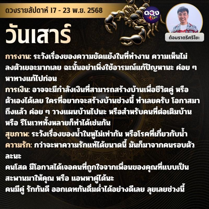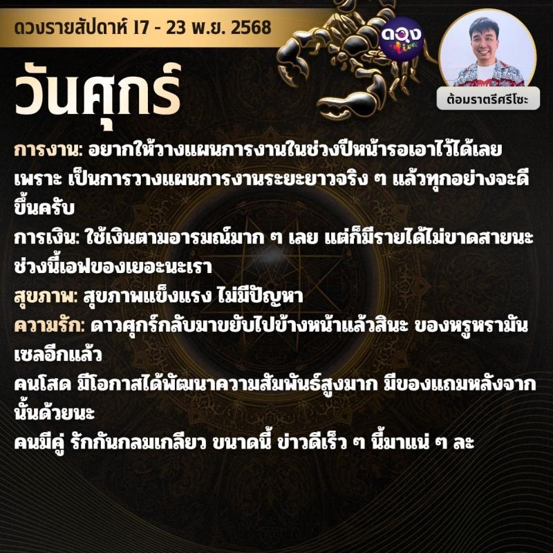 ดวงรายสัปดาห์ 17 - 23 พฤศจิกายน 2568 by ต้อมราตรีศรีโซะ