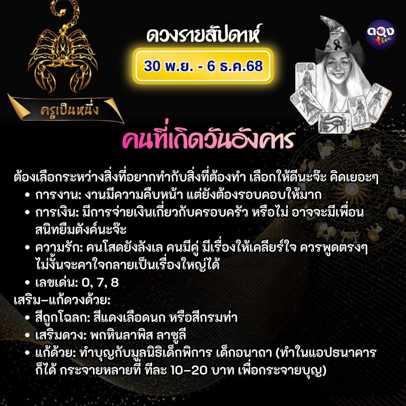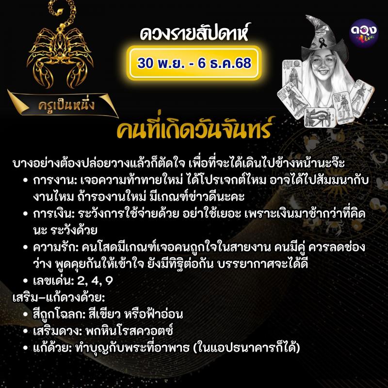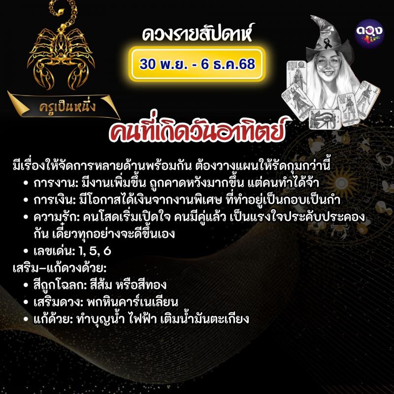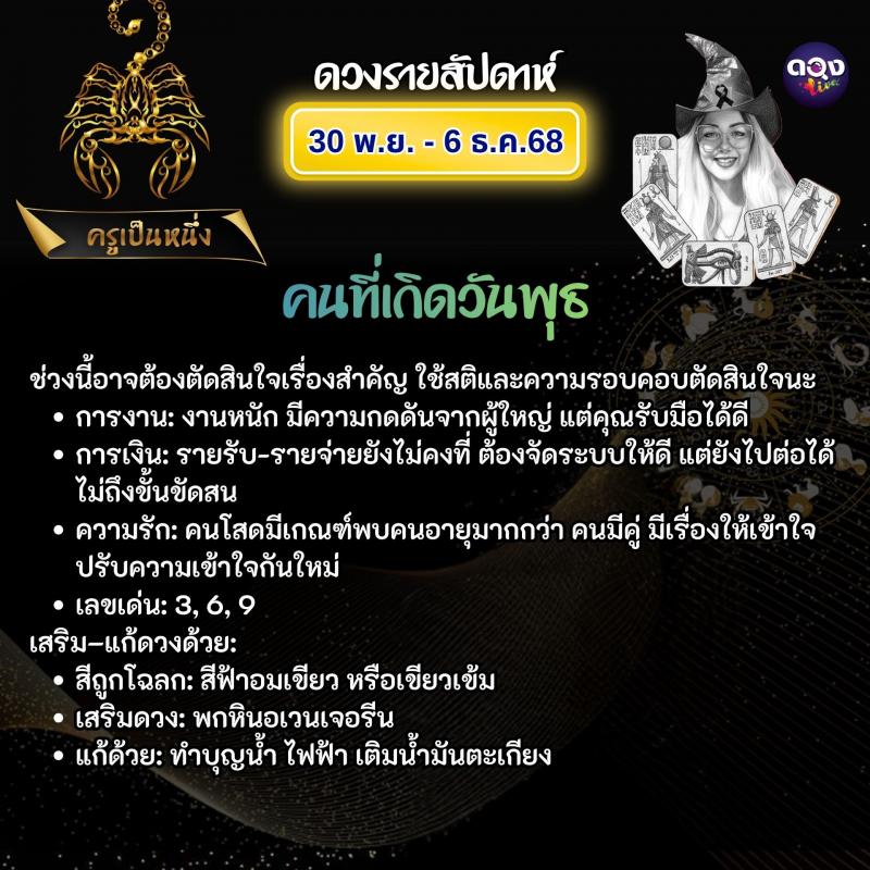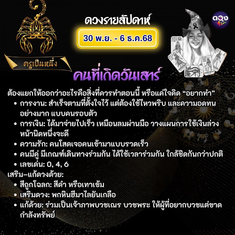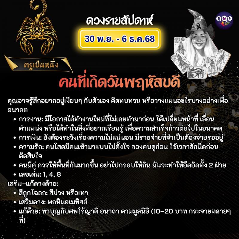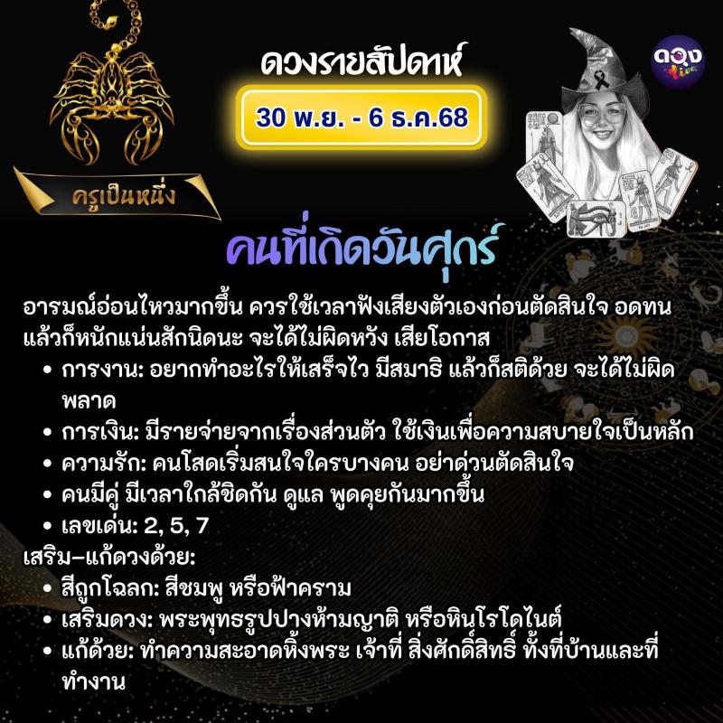 ดวงรายสัปดาห์ 30 พฤศจิกายน – 6 ธันวาคม 2568 ทำนายโดย ครูเป็นหนึ่ง