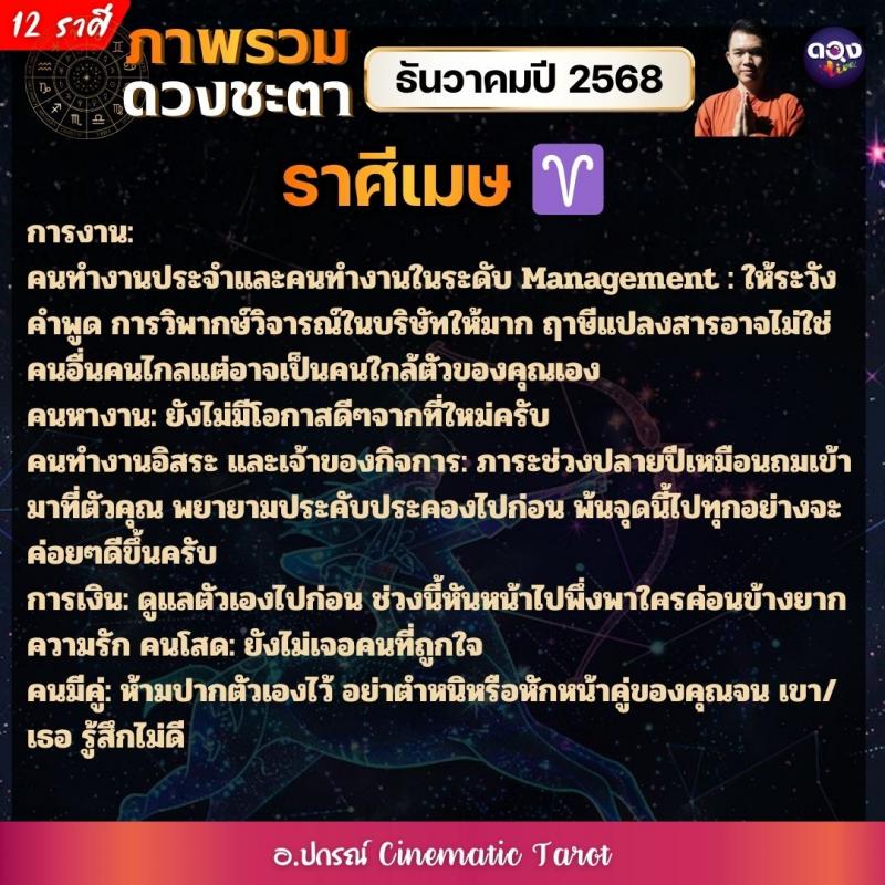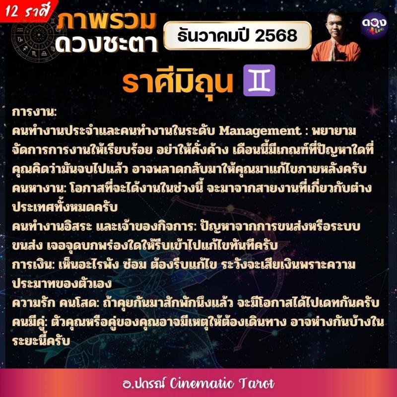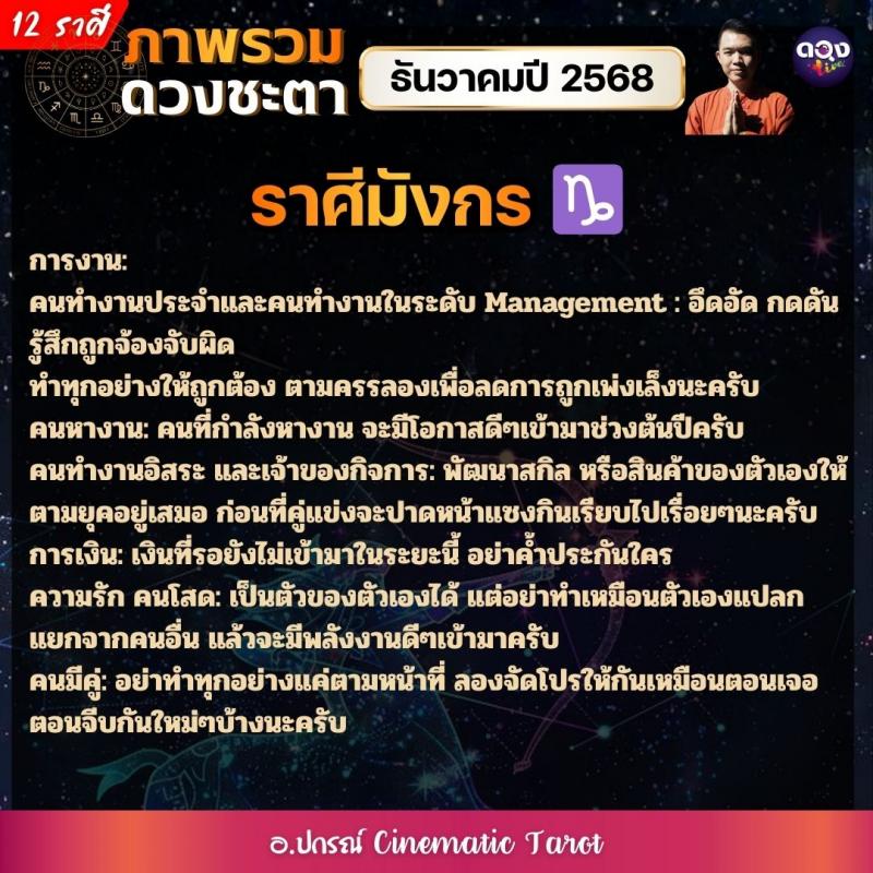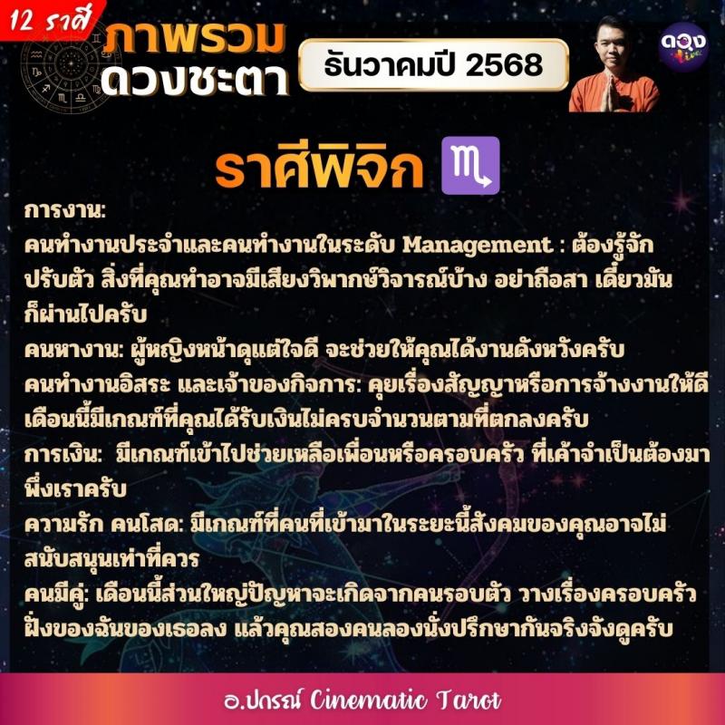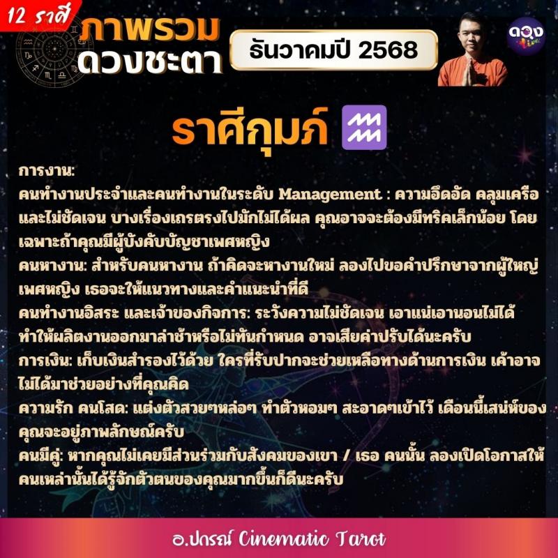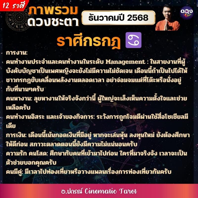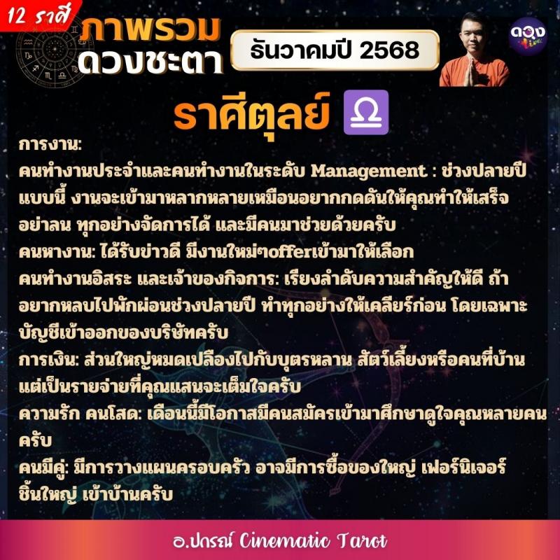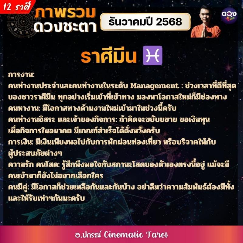 ภาพรวมดวงชะตาของทั้ง 12 ราศี ในเดือนธันวาคมปี 2568  by อ.ปกรณ์ Cinematic Tarot