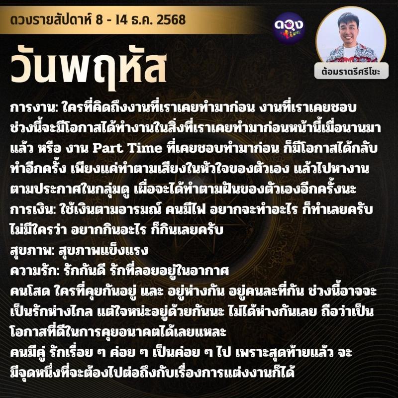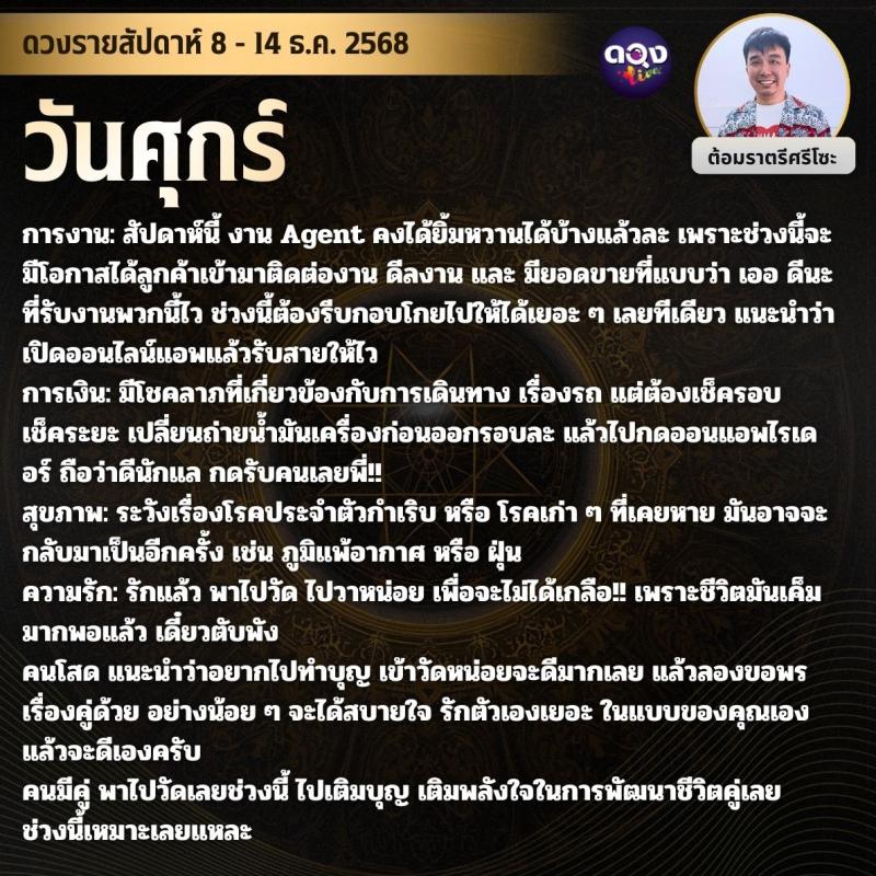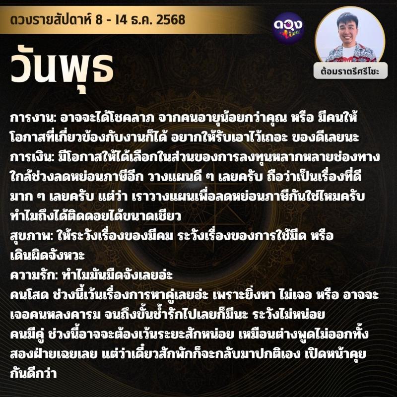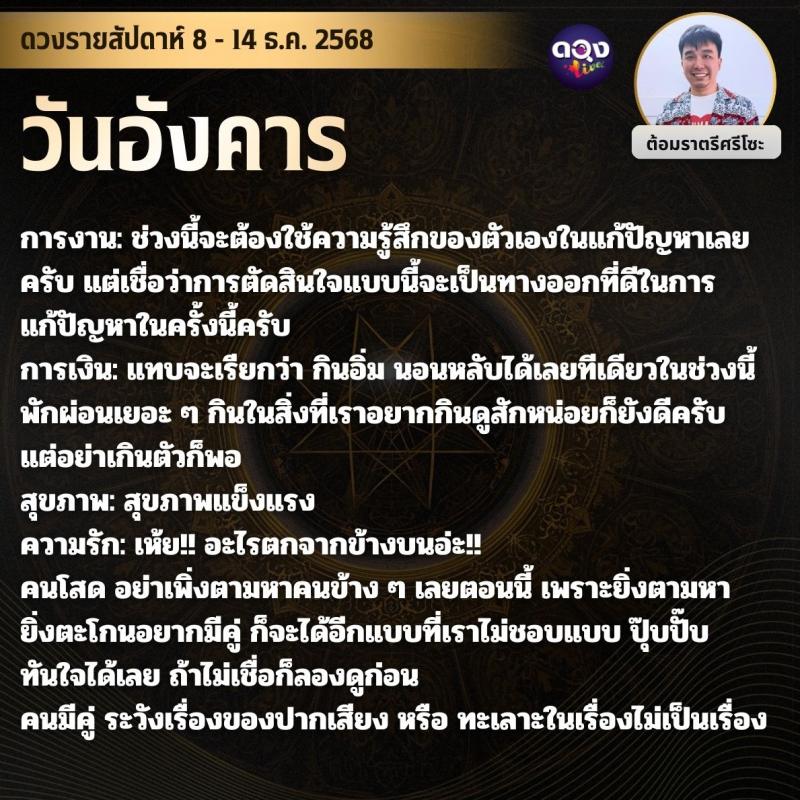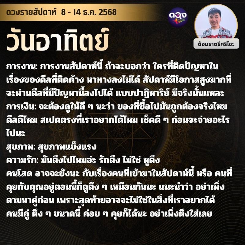 ดวงรายสัปดาห์ 8 - 14 ธ.ค. 2568 by ต้อมราตรีศรีโซะ