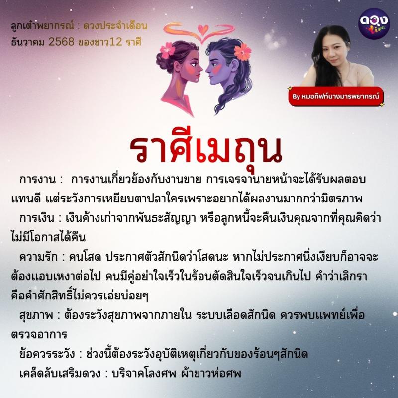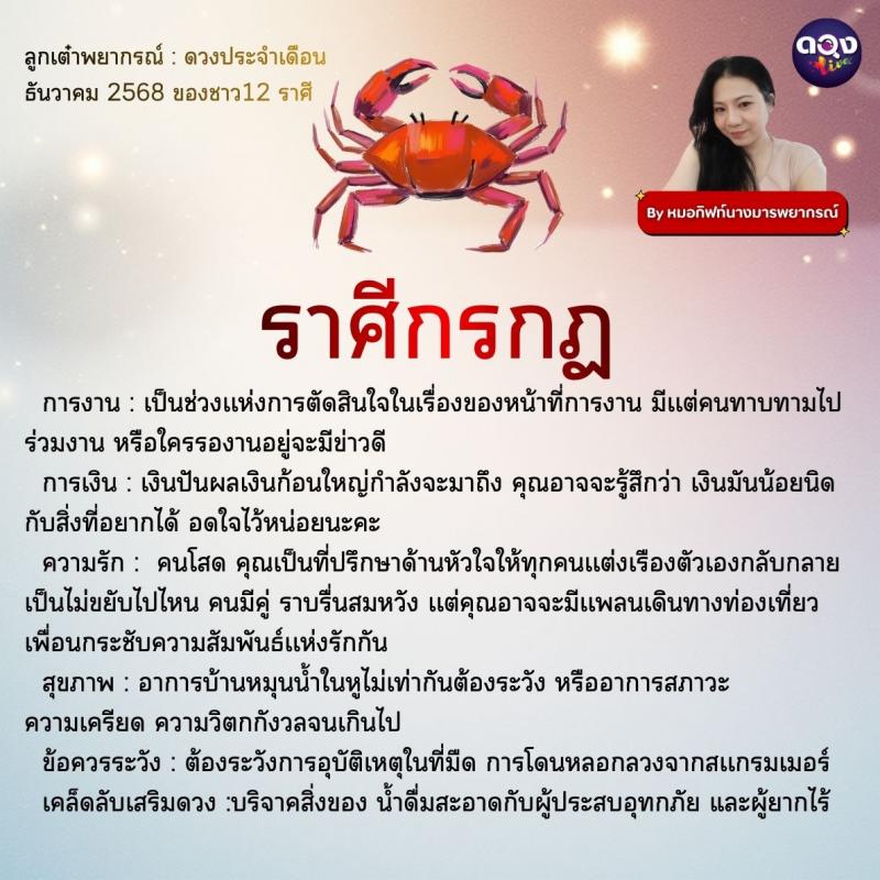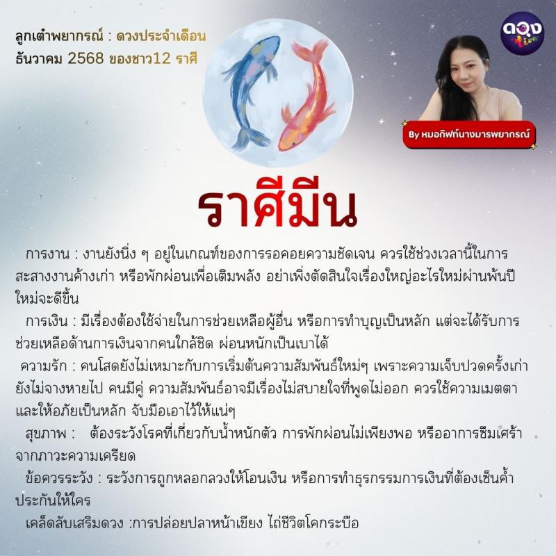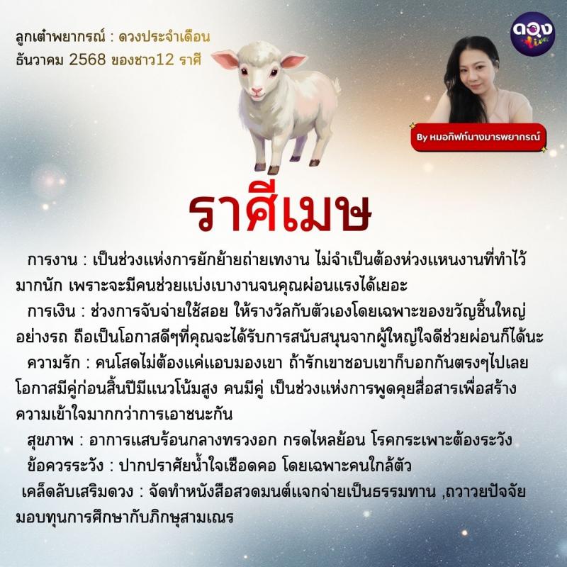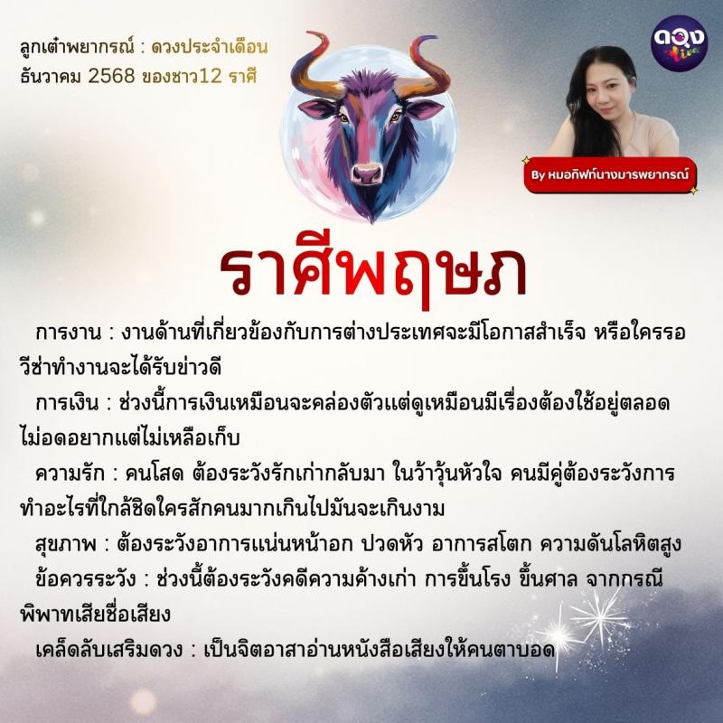 ลูกเต๋าพยากรณ์: ดวงประจำเดือนธันวาคม 2568 ของชาว 12 ราศี BY: หมอกิฟท์นางมารพยากรณ์