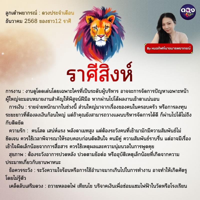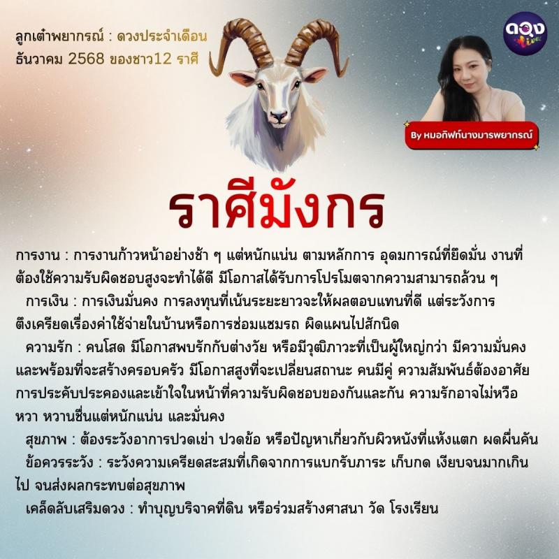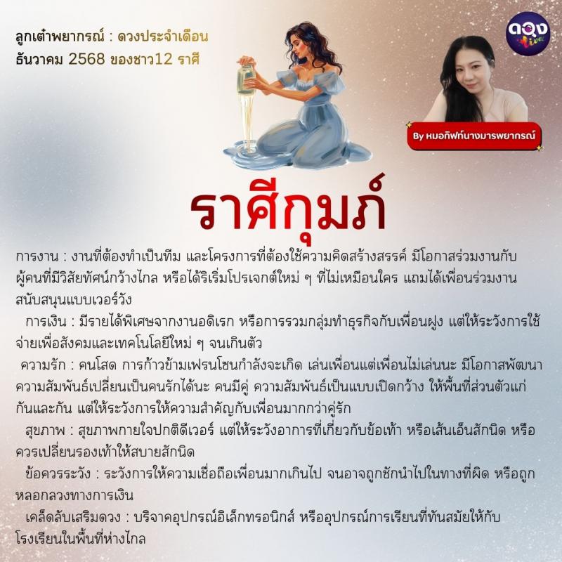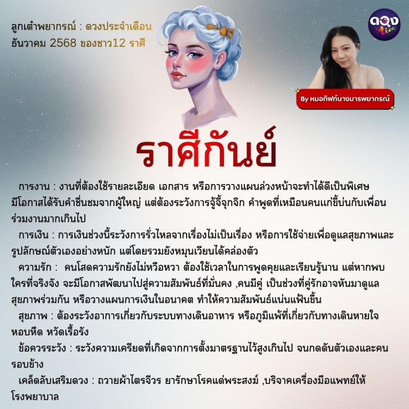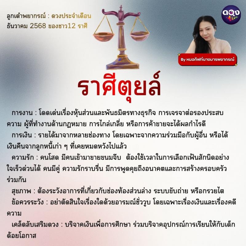 ลูกเต๋าพยากรณ์: ดวงประจำเดือนธันวาคม 2568 ของชาว 12 ราศี BY: หมอกิฟท์นางมารพยากรณ์