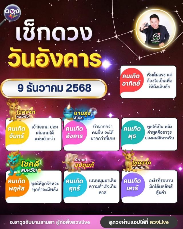 ดวงรายวันประจำวันอังคารที่ 9 ธันวาคม 2568 โดย อ.อาวุธจับยามสามตา – ผู้ก่อตั้งดวง Live