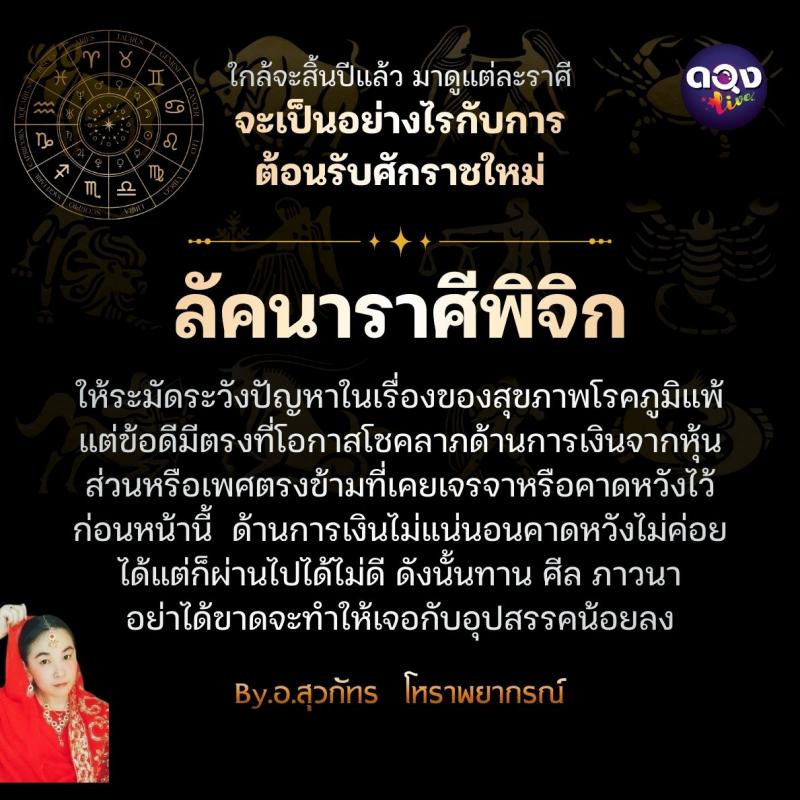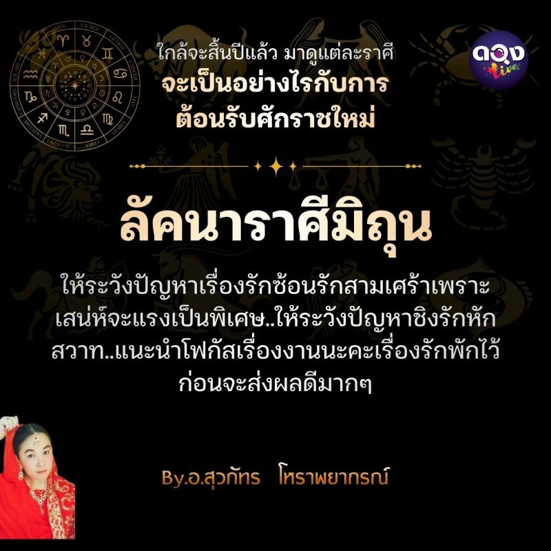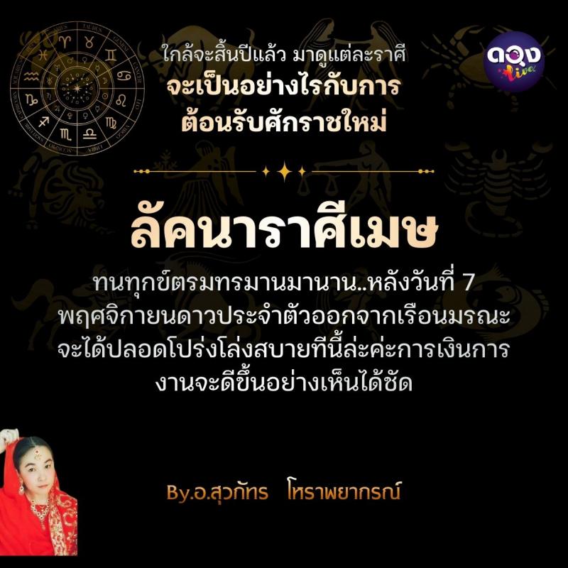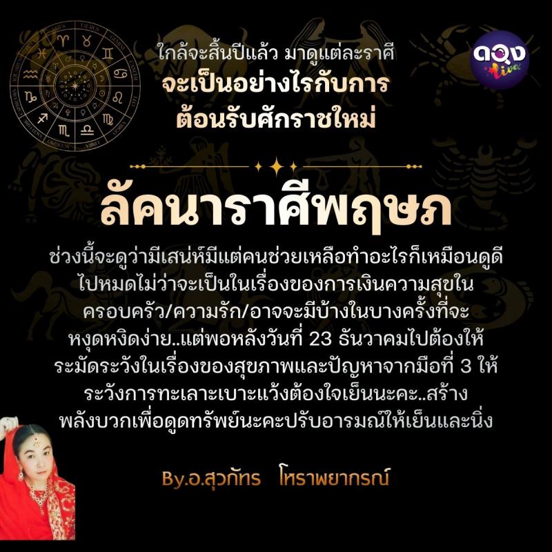 ใกล้จะสิ้นปีแล้วมาดูแต่ละราศีจะเป็นอย่างไรกับการต้อนรับศักราชใหม่ โดย อ.สุวภัทร โหราพยากรณ์