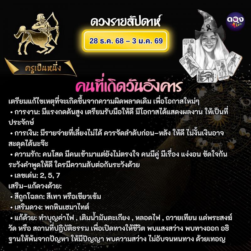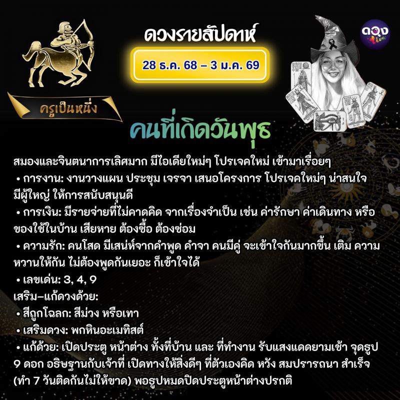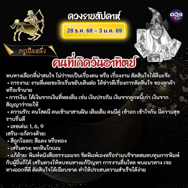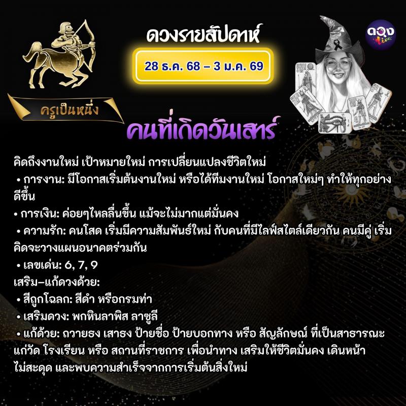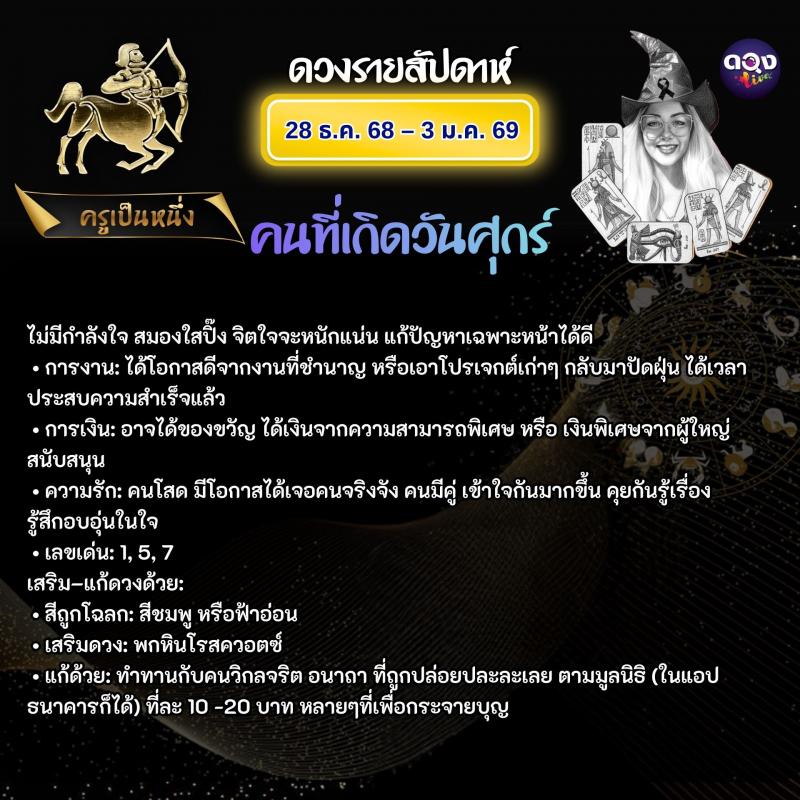 ดวงรายสัปดาห์ 28 ธันวาคม 2568 – 3 มกราคม 2569 โดย ครูเป็นหนึ่ง