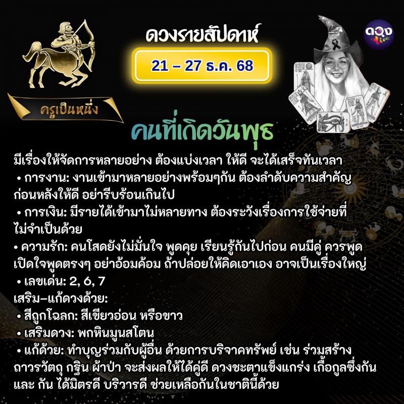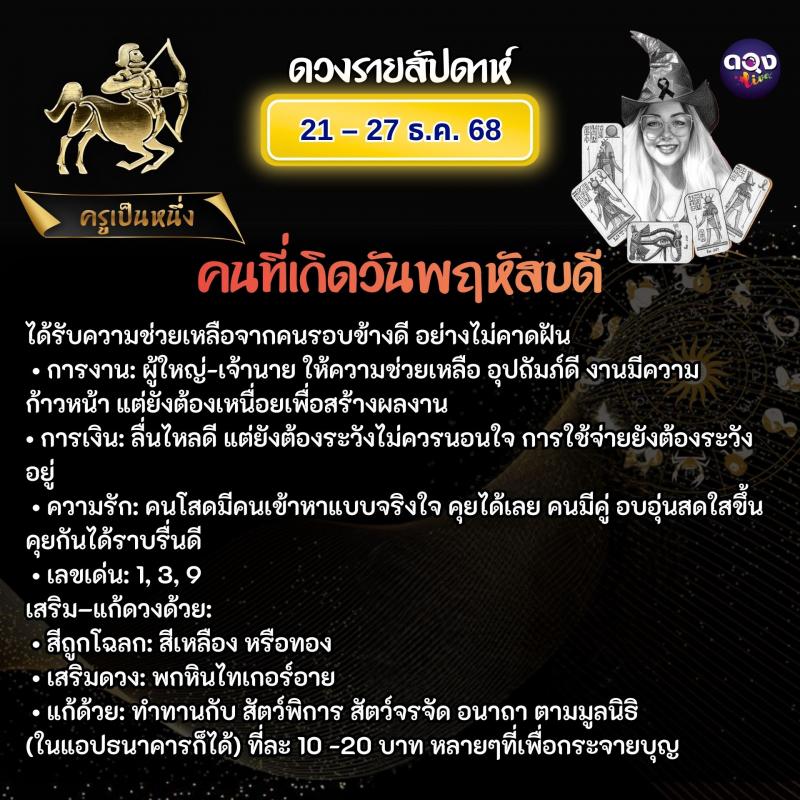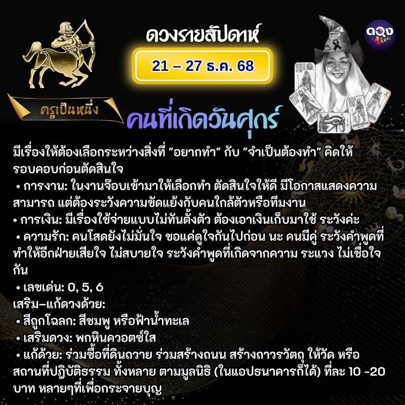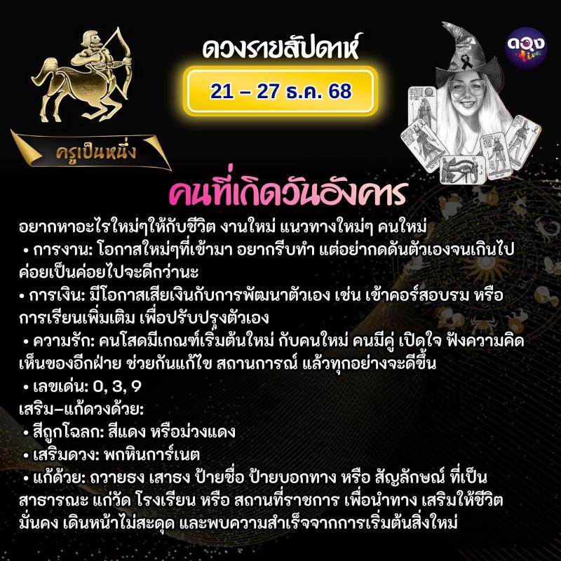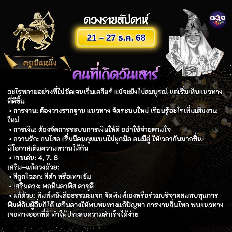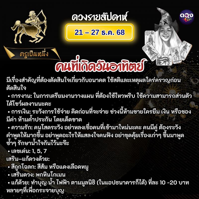 ดวงรายสัปดาห์ 21 – 27 ธันวาคม 2568 โดย ครูเป็นหนึ่ง