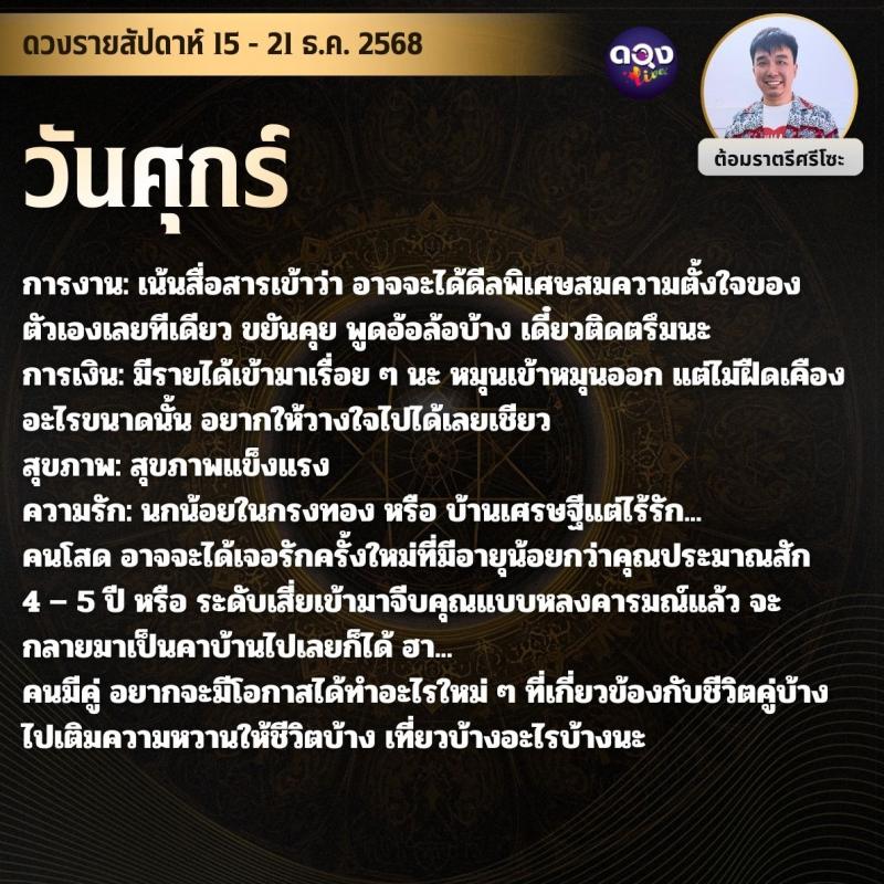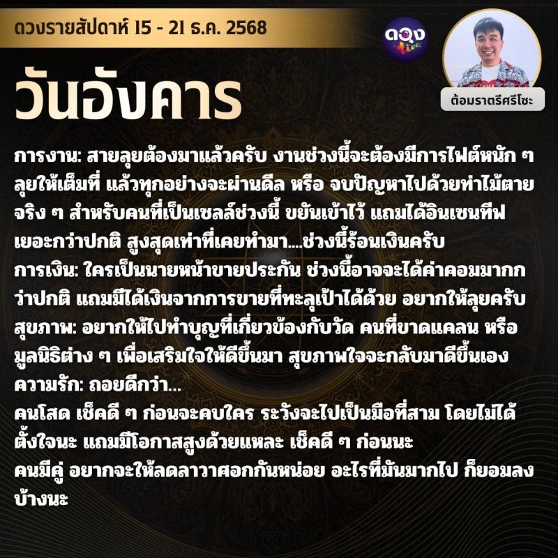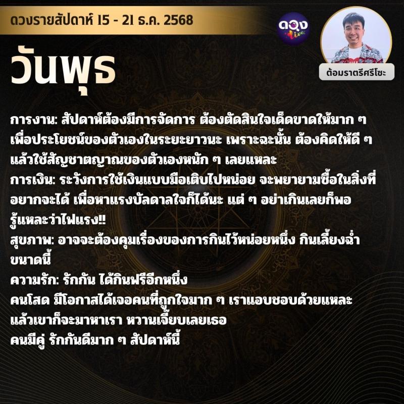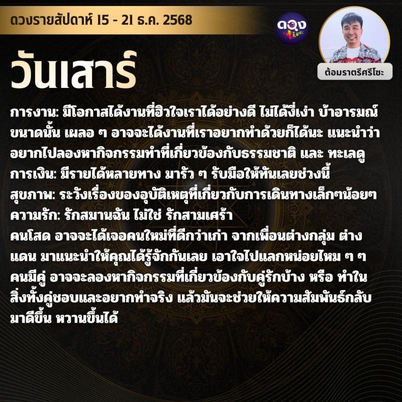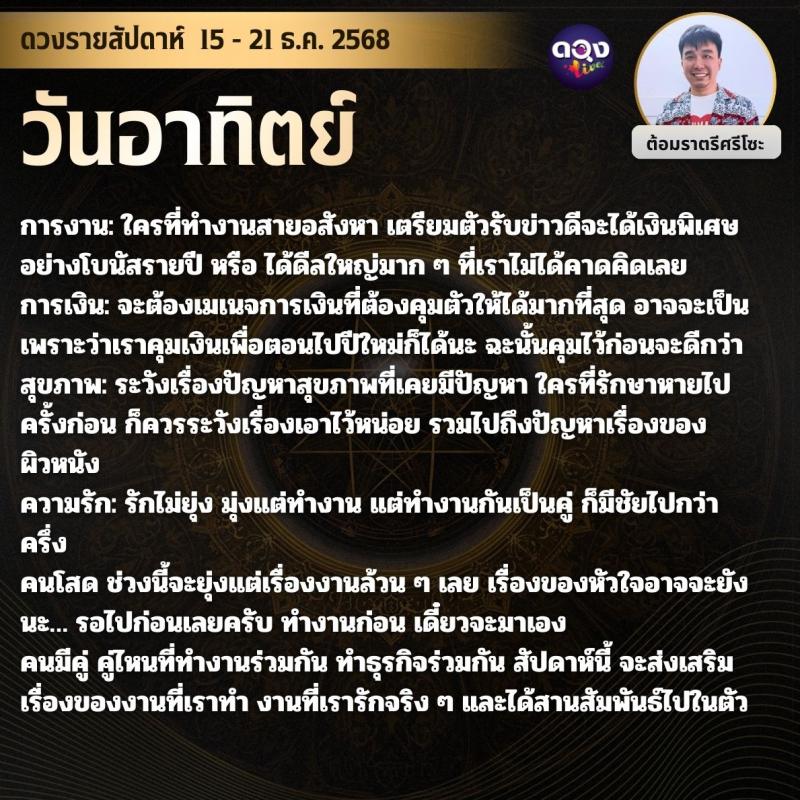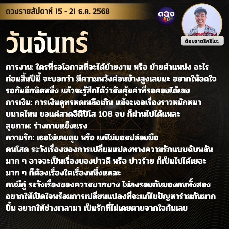 ดวงรายสัปดาห์ 15 - 21 ธ.ค. 2568 by ต้อมราตรีศรีโซะ