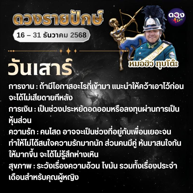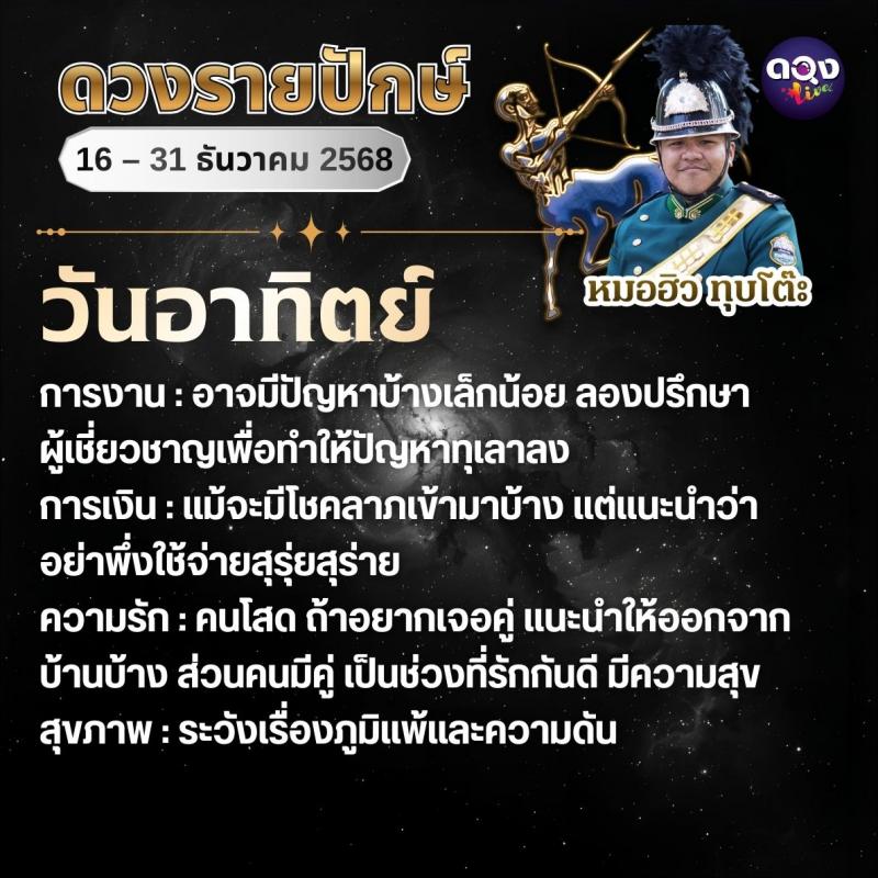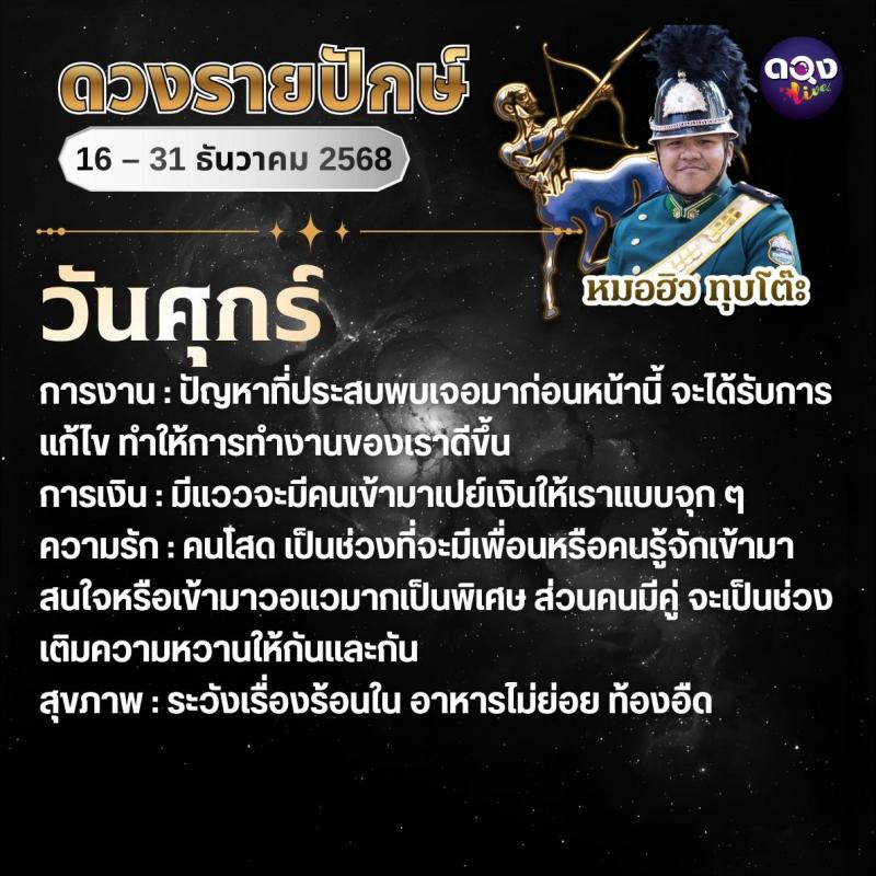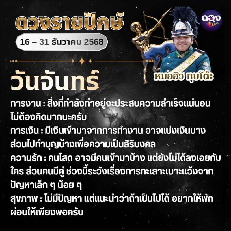 ดวงรายปักษ์ 16 – 31 ธันวาคม 2568 โดย หมอฮิว ทุบโต๊ะ