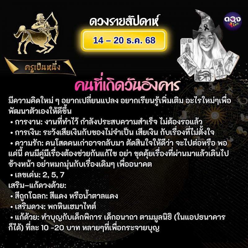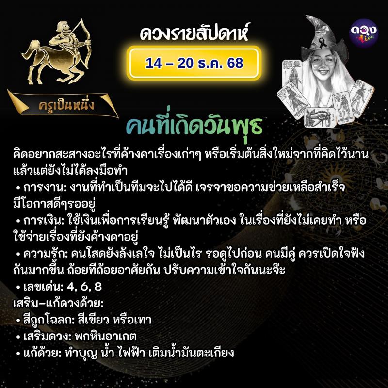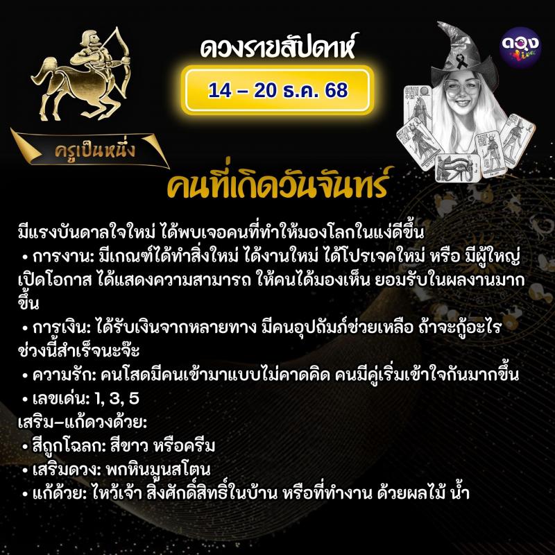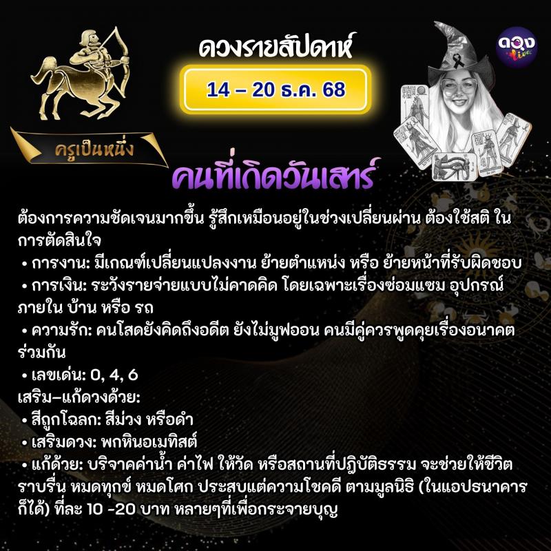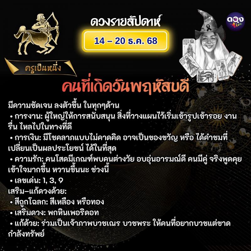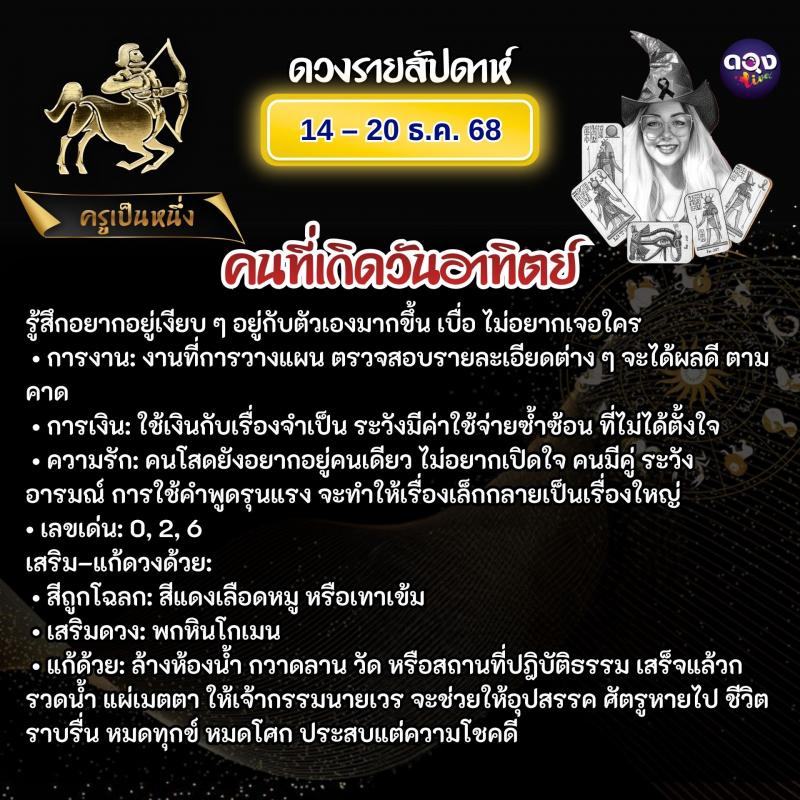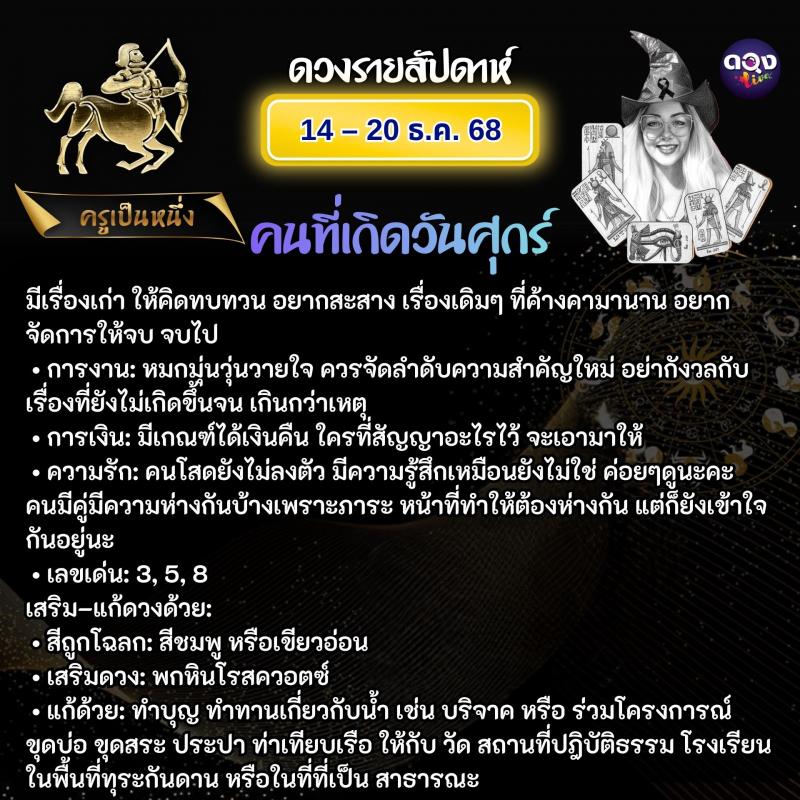 ดวงรายสัปดาห์ 14 – 20 ธันวาคม 2568 โดย ครูเป็นหนึ่ง