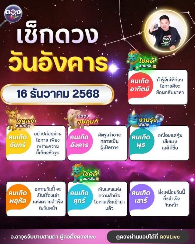 ดวงรายวันประจำวันอังคารที่ 16 ธันวาคม 2568 โดย อ.อาวุธจับยามสามตา – ผู้ก่อตั้งดวง Live