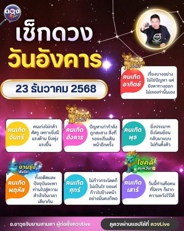 ดวงรายวันประจำวันอังคารที่ 23 ธันวาคม 2568 โดย อ.อาวุธจับยามสามตา – ผู้ก่อตั้งดวง Live