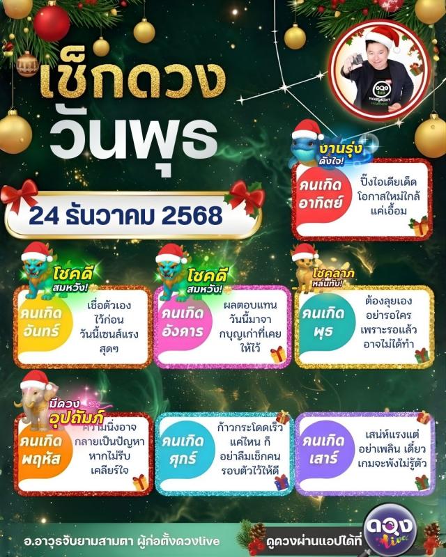 ดวงรายวันประจำวันพุธที่ 24 ธันวาคม 2568 โดย อ.อาวุธจับยามสามตา – ผู้ก่อตั้งดวง Live