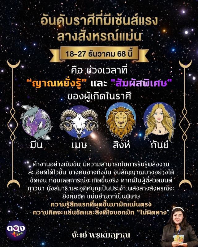 อันดับราศีที่มีเซ้นส์แรง ลางสังหรณ์แม่น 18-27 ธันวาคม 68 นี้พยากรณ์โดย จ๊ะเอ๋ พรหมญาณ