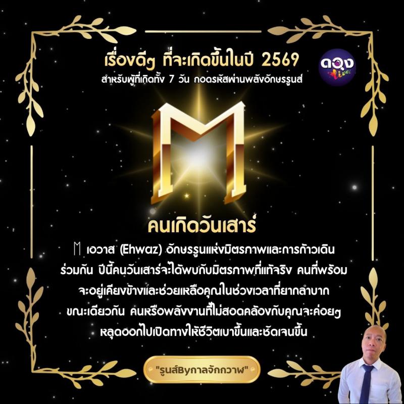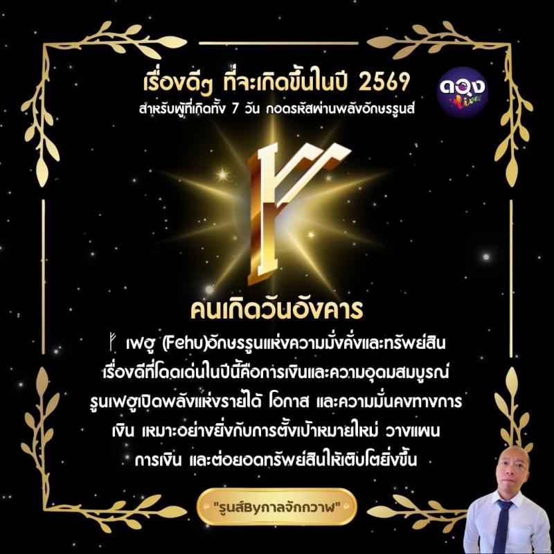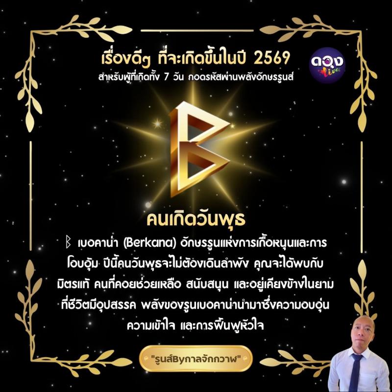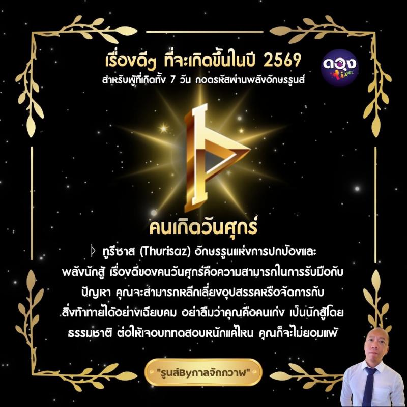 เรื่องดีๆ ที่จะเกิดขึ้นในปี 2569 สำหรับผู้ที่เกิดทั้ง 7 วัน ถอดรหัสผ่านพลังอักษรรูนส์"รูนส์Byกาลจักกวาฬ"