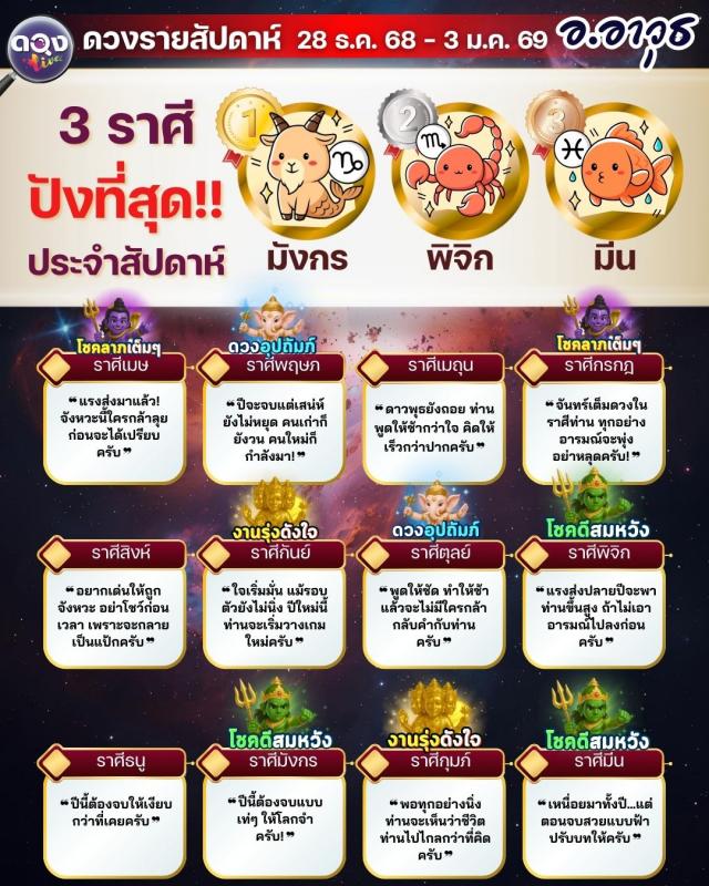 ดวงรายสัปดาห์ 28 ธ.ค. 68 – 3 ม.ค. 69 โดย อ.อาวุธ จับยามสามตา – ผู้ก่อตั้งดวง Live