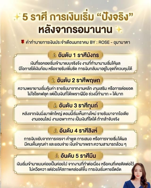 5 ราศี การเงินเริ่ม “ปังจริง” หลังจากรอมานาน คำทำนายการเงินประจำเดือนมกราคม BY : ROSE - อุมามาตา