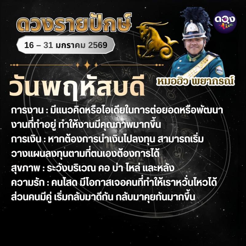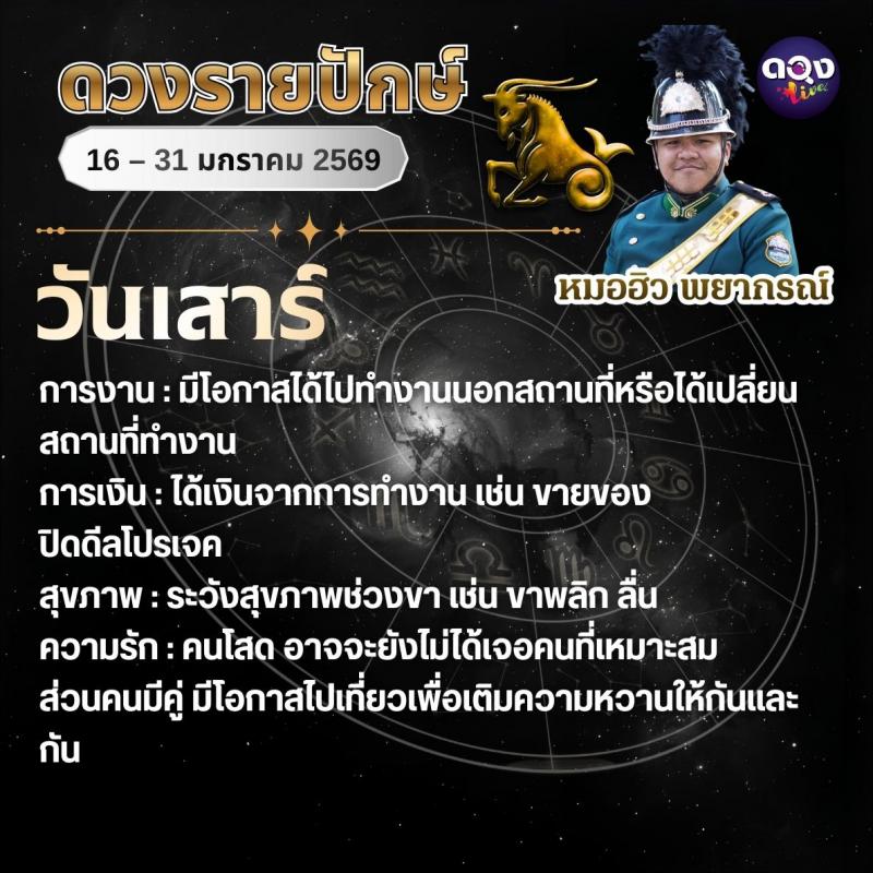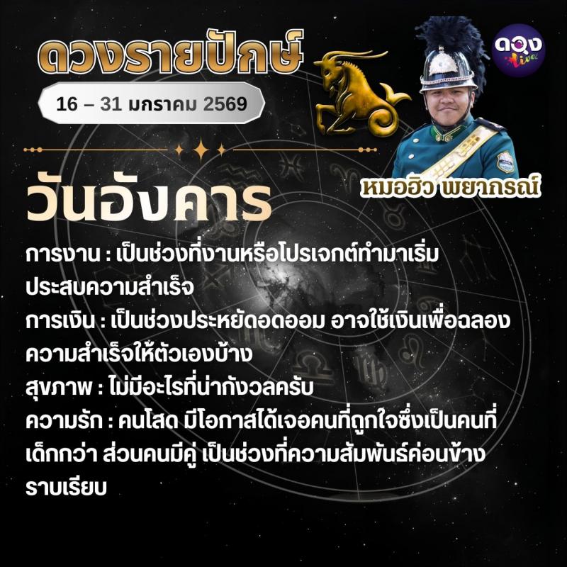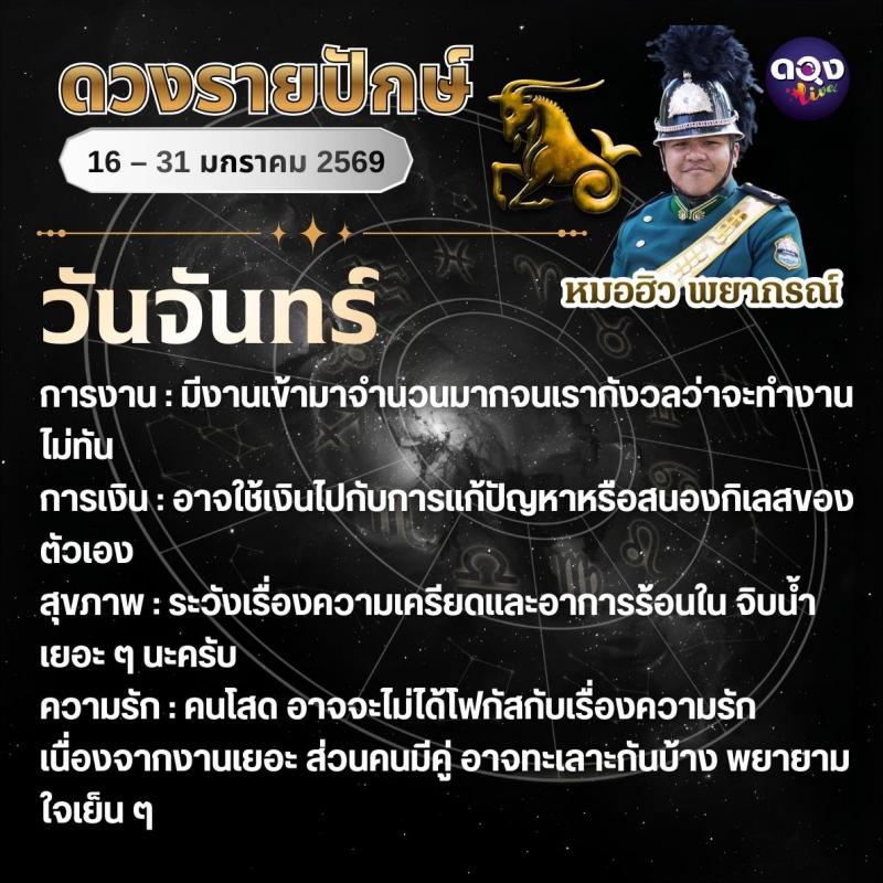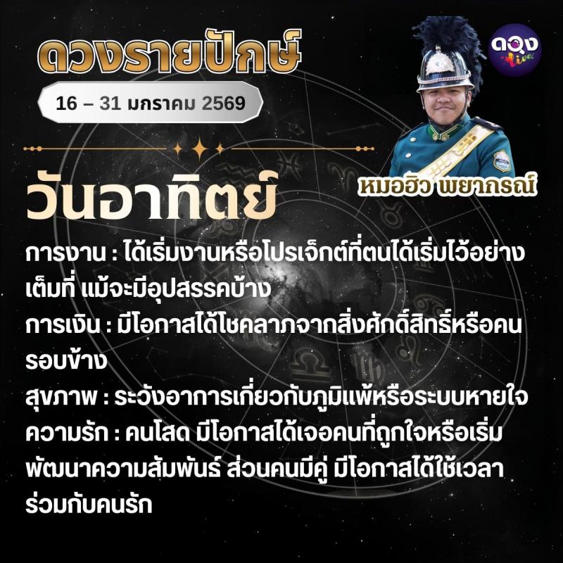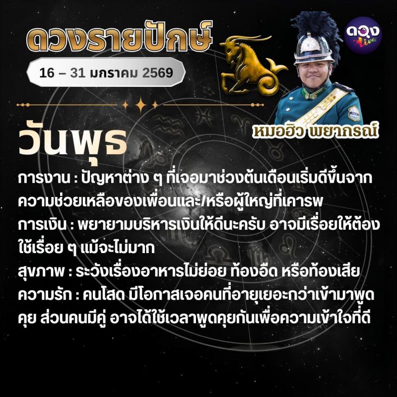 ดวงรายปักษ์ ประจำวันที่ 16 – 31 มกราคม 2569 หมอฮิว พยากรณ์