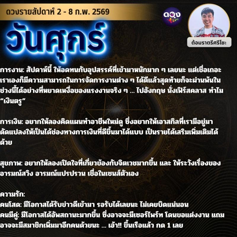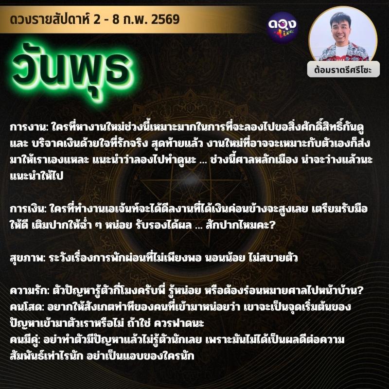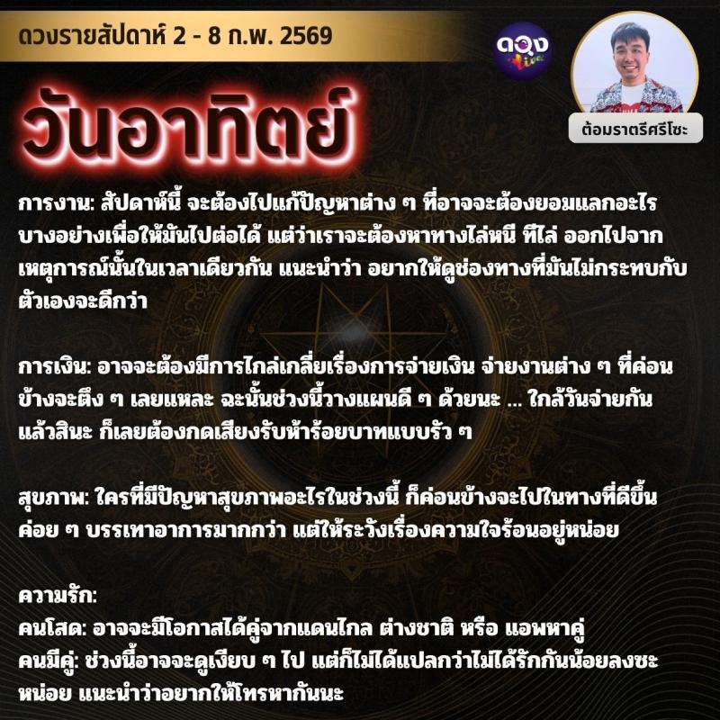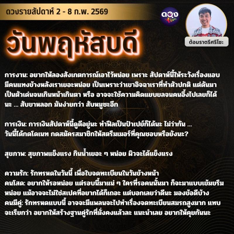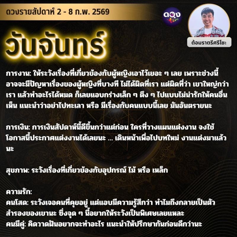 ดวงรายสัปดาห์ 2 - 8 ก.พ. 2569 by ต้อมราตรีศรีโซะ