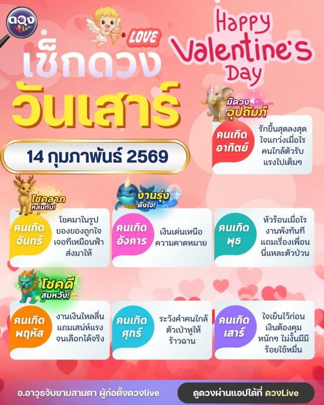 ดวงรายวันประจำวันเสาร์ที่ 14 กุมภาพันธ์ 2569 โดย อ.อาวุธจับยามสามตา – ผู้ก่อตั้งดวง Live