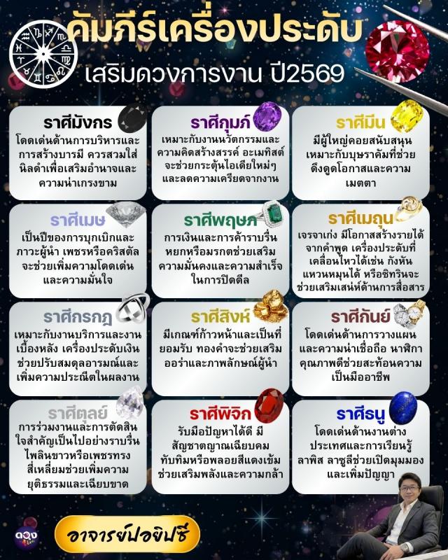 คัมภีร์เครื่องประดับเสริมดวงการงาน ปี 2569 ทำนายโดย อ.ปอยิปซี