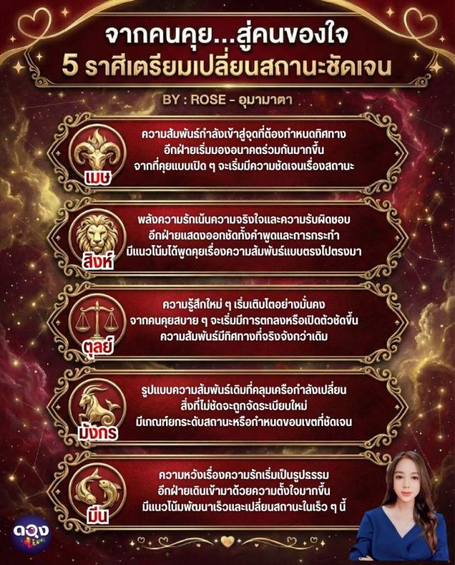 จากคนคุย…สู่คนของใจ 5 ราศีเตรียมเปลี่ยนสถานะชัดเจน BY : ROSE – อุมามาตา