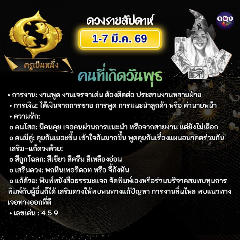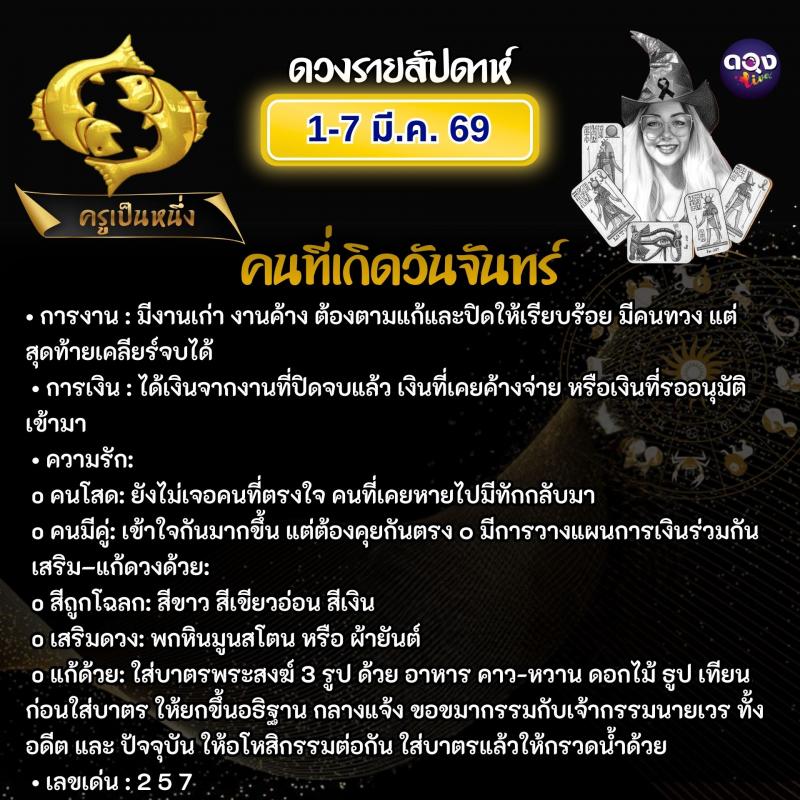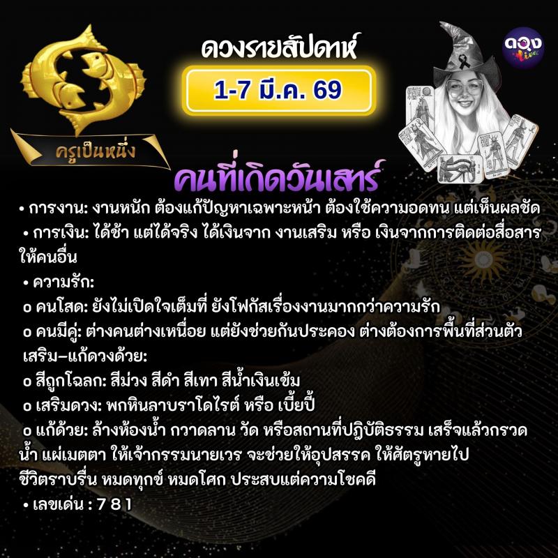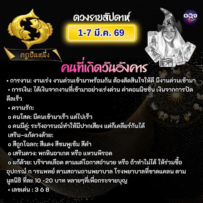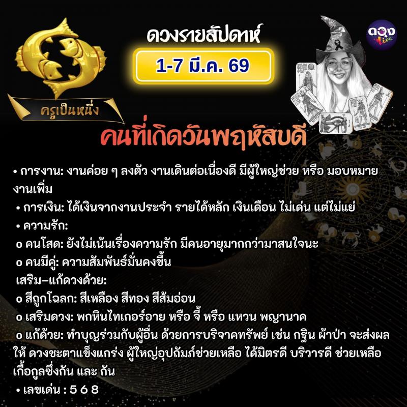 ดวงรายสัปดาห์ 1–7 มีนาคม 2569 ทำนายโดย ครูเป็นหนึ่ง