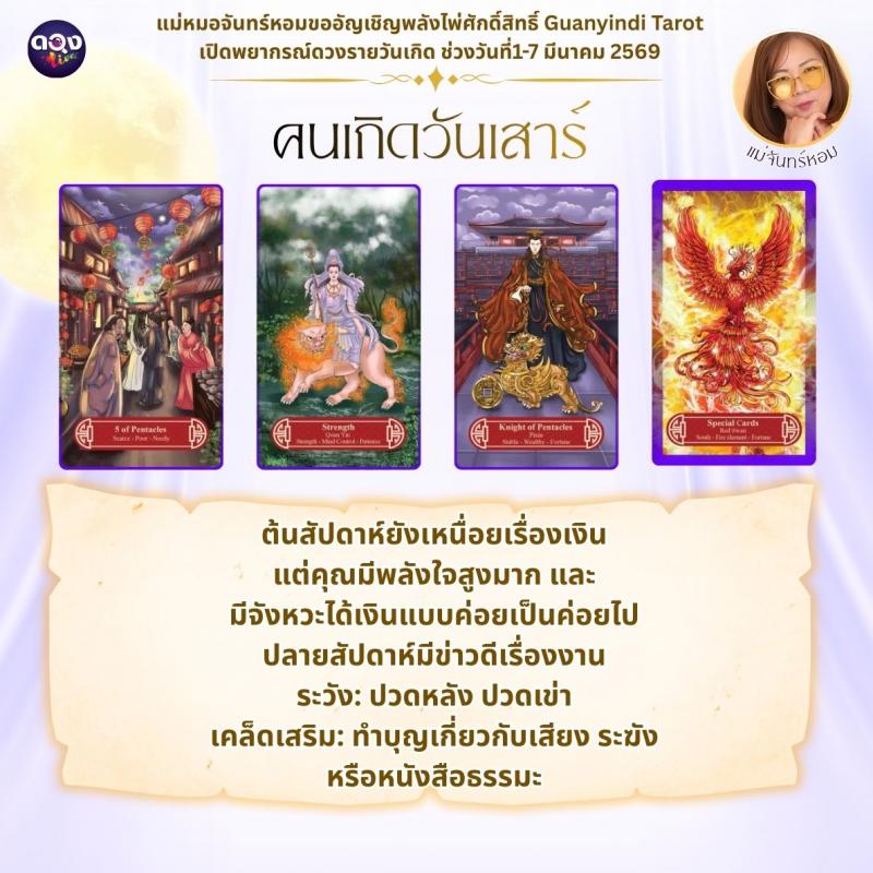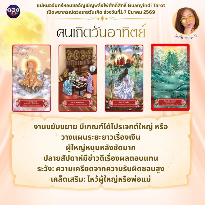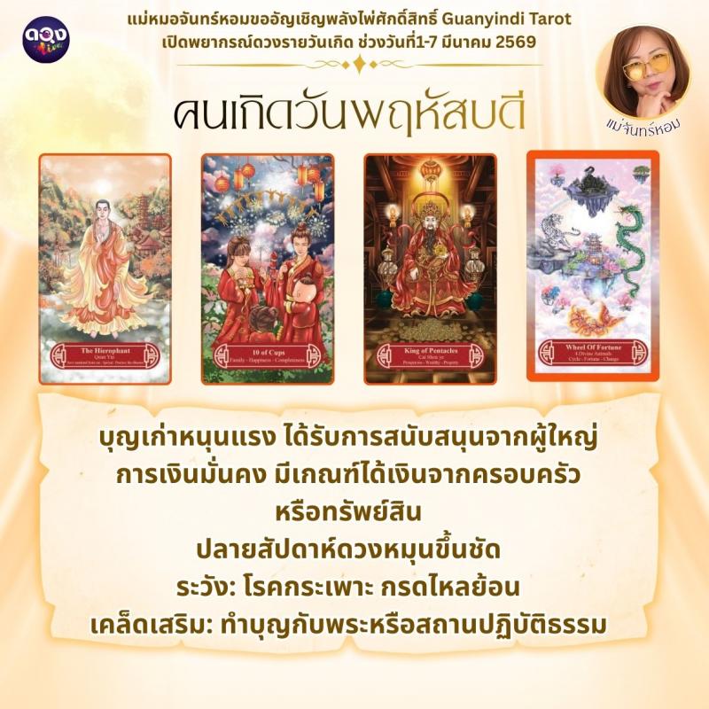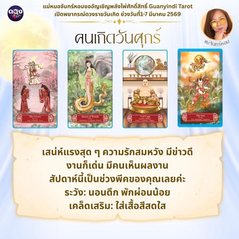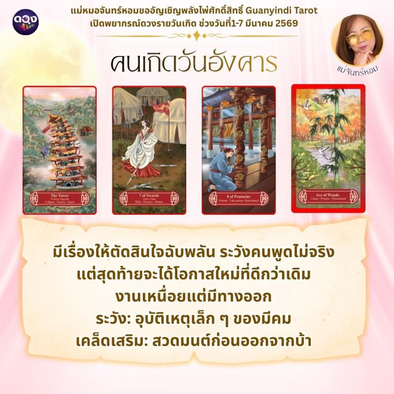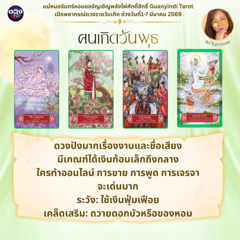 แม่หมอจันทร์หอมขออัญเชิญพลังไพ่ศักดิ์สิทธิ์ Guanyindi Tarot เปิดพยากรณ์ดวงรายวันเกิด ช่วงวันที่ 1-7 มีนาคม 2569