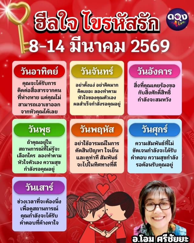 ฮีลใจ ไขรหัสรัก 8 - 14 มีนาคม 2569 ทำนายโดย อ.โอมศรีชัยยะ