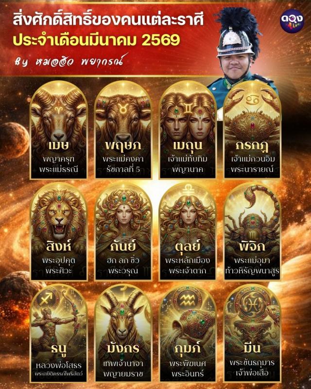 สิ่งศักดิ์สิทธิ์ของคนแต่ละราศี ประจำเดือนมีนาคม 2569 By หมอฮิว พยากรณ์