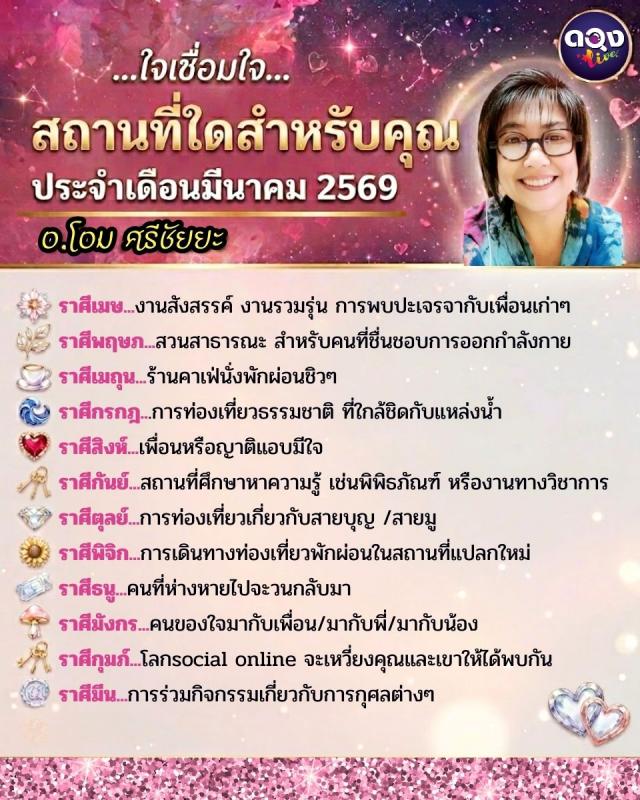 ใจเชื่อมใจสถานที่ใดสำหรับคุณ ประจำเดือนมีนาคม 2569 ทำนายโดย อ.โอมศรีชัยยะ